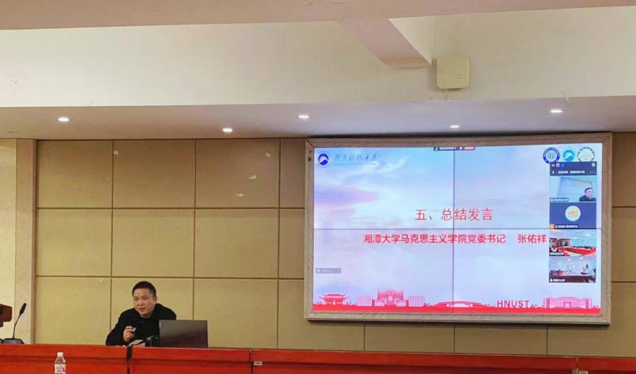 此外,三校思政课教师还进行了充分的自由讨论,分别就思政课教学与改革谈了自己的认识与体会。参会者表示,通过这次集体备课会,他们获得了新的视角,对教学和科研都有所帮助。同时,他们认为,在师资队伍发展与完善、教育教学改革与实践、学科科研建设与提高等方面需要协调联动、资源共享,以进一步提升教学和科研水平。最后,湘潭大学永利yl23411党委书记张佑祥进行总结发言,他认为此次集体备课会具有以下几个特点,主题重大有意义,此次集体备课会聚焦党的二十届三中全会精神融入思政课教学,具有十分重大的意义;研讨深入有成效,青年教师就全会精神融入“概论课”教学“何以必要、何以可能”提出了很好的思路、方法和途径,三所高校永利yl23411在思政课建设方面的特色值得相互借鉴;合作务实结硕果,三所永利yl23411在慕课西行合作框架下的紧密合作得到进一步的夯实,可以从集体备课、科研协同、育人合作进一步扩展到各个领域、各个方面。