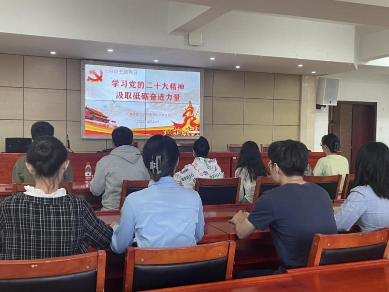 为深入学习贯彻党的二十大精神,不断推动广大青年党员理解好、把握准、领悟透党的二十大精神。10月25日,我院五个学生党支部及下属昭潭书院校区党小组分别开展了“学习党的二十大精神,汲取砥砺奋进力量”主题党日活动。此次活动全体学生党员参会,院党委副书记刘图其、院兼职组织员管桂翠博士参加昭潭书院校区主题党日活动。