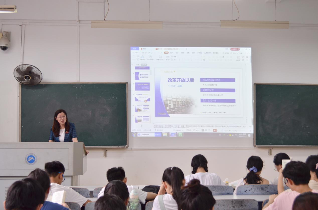7月1日下午五六节课,副校长谢慧在八教3-5给生科学院20级本科生上了一堂关于“绘就新蓝图,奋进新征程”的“形势与政策”专题思政课。随着上课铃声响起,谢慧开始了精彩的讲课。