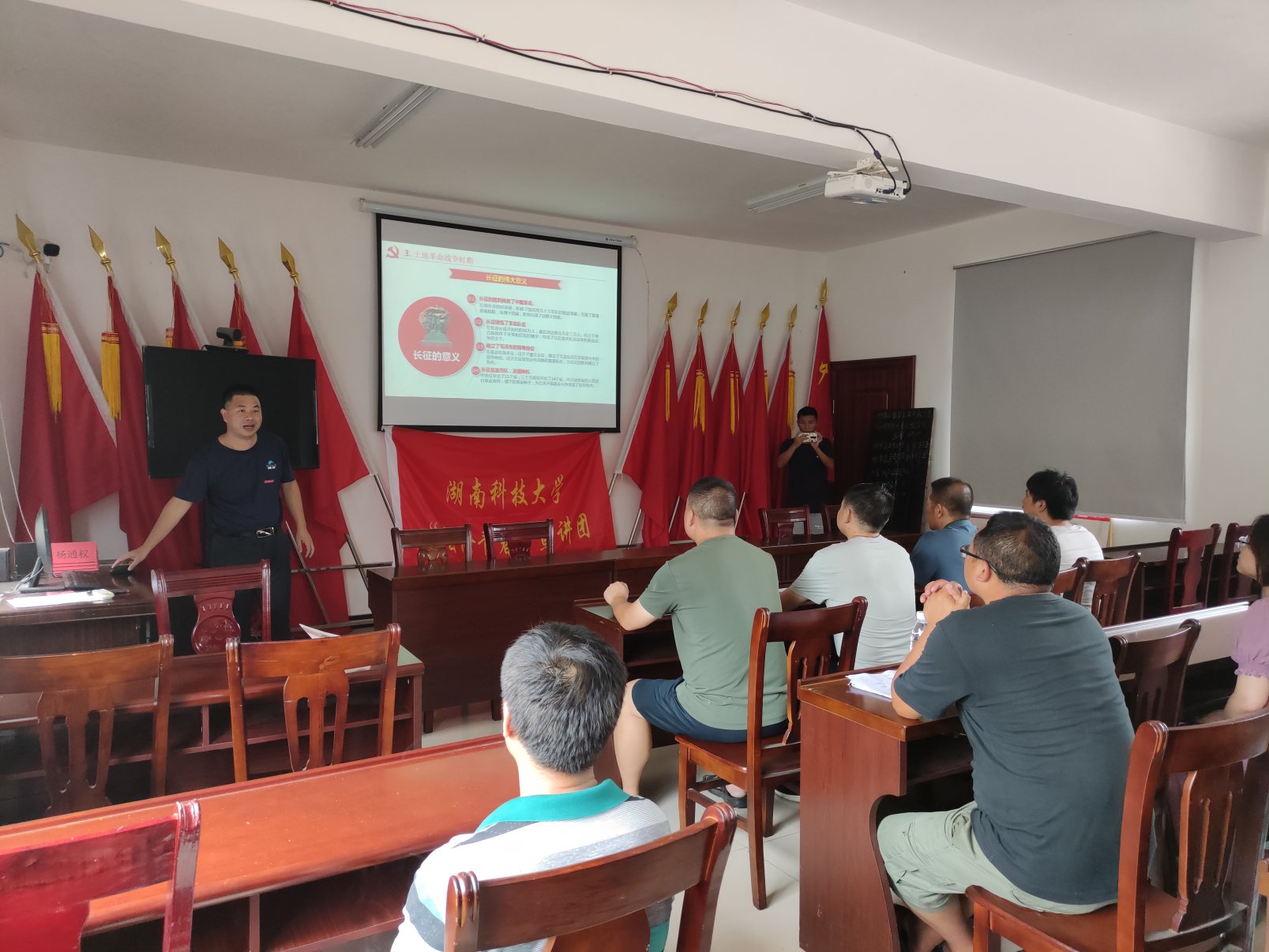 “习近平总书记说,心中有信仰,脚下有力量。咱们木脚村,就是一个心中有信仰、脚下有力量的集体!“在万佛山镇木脚村举行的宣讲总结大会上,湖南科技大学智绘青春宣讲团团长、永利yl23411思政课教师禹旭才教授动情地向当地党员干部和村民讲述着再次来到该地进行理论宣讲的切身体会。参加总结会议的还有万佛山镇副镇长候选人杨波、木脚村党支部书记吴菊凤和当地部分党员干部、村民及“三下乡”大学生。会议由木脚村杨进松副书记主持。