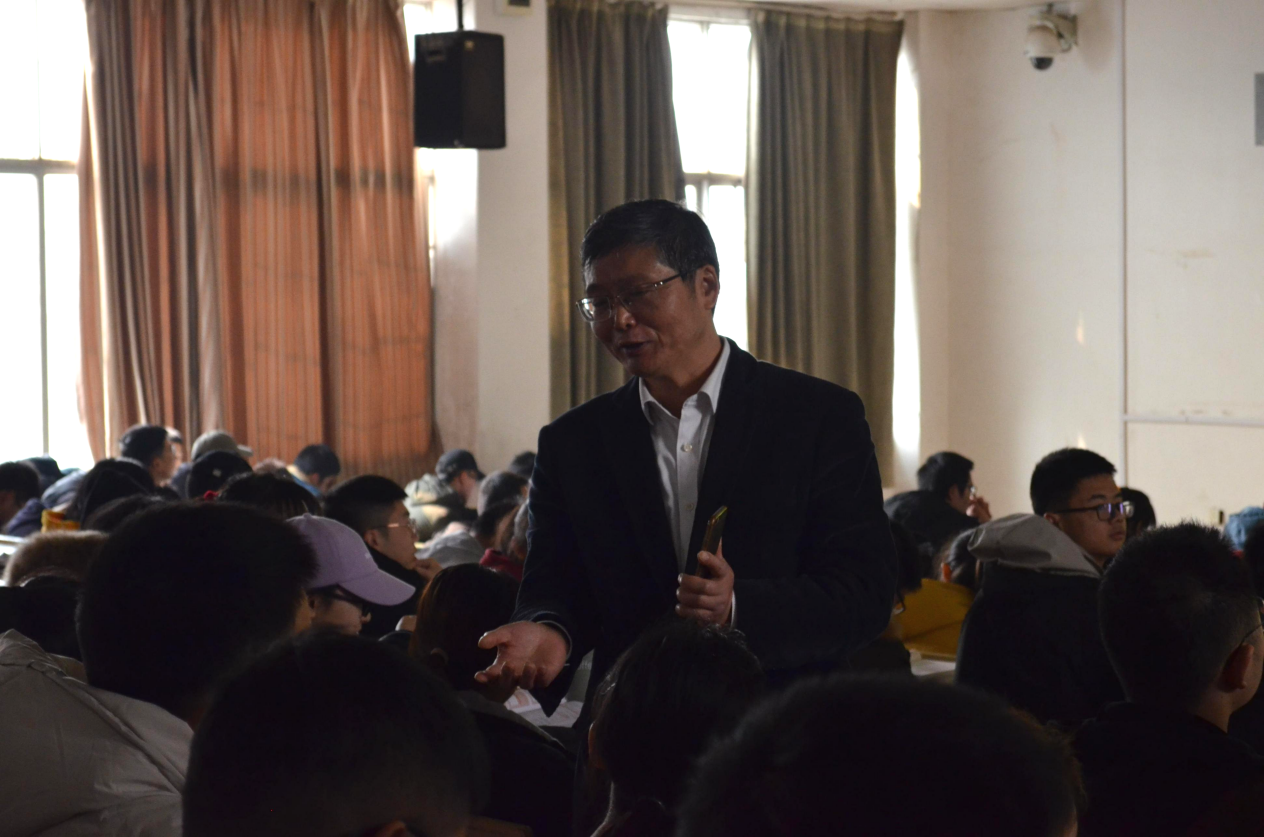 讲课初始,刘德顺书记带领同学们回顾2020年,过去一年中令人揪心的新冠疫情无疑是一个重大时事事件,书记以此为引顺利展示出本堂课的主题:“读懂疫情大考的‘中国答卷’”。随后,刘德顺书记抛出“疫情防控取得胜利的重要因素有哪些?”这一问题,现场的同学们积极思考,热请抢答,刘书记从同学们的答案中总结出人和社会两个方面的主要原因,归纳清楚明晰,让同学们印象深刻。