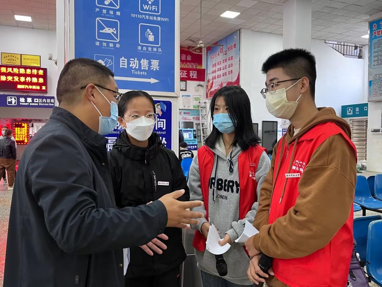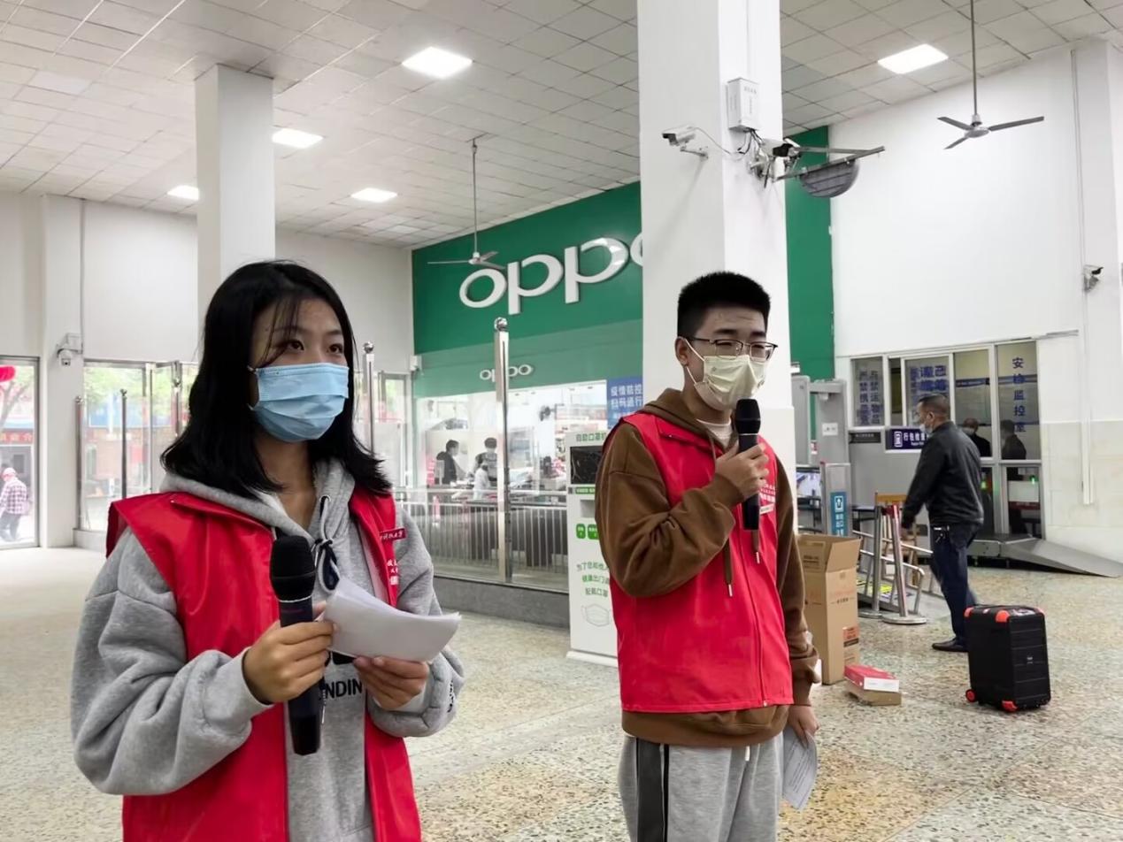 汽车西站的宣讲活动以“理论宣讲+文艺表演”的形式举行,由宣讲团成员杜函倚、臧诗宇主持。宣讲成员臧诗宇、杨盈莹、李莎分别以新一届中央政治局常委亮相、绿色发展、制度解读为主题,介绍了党的二十大报告部分内容,呼吁大家多关注党的二十大,要做到家事国事事事关心,成为有责任、敢担当的新时代公民。