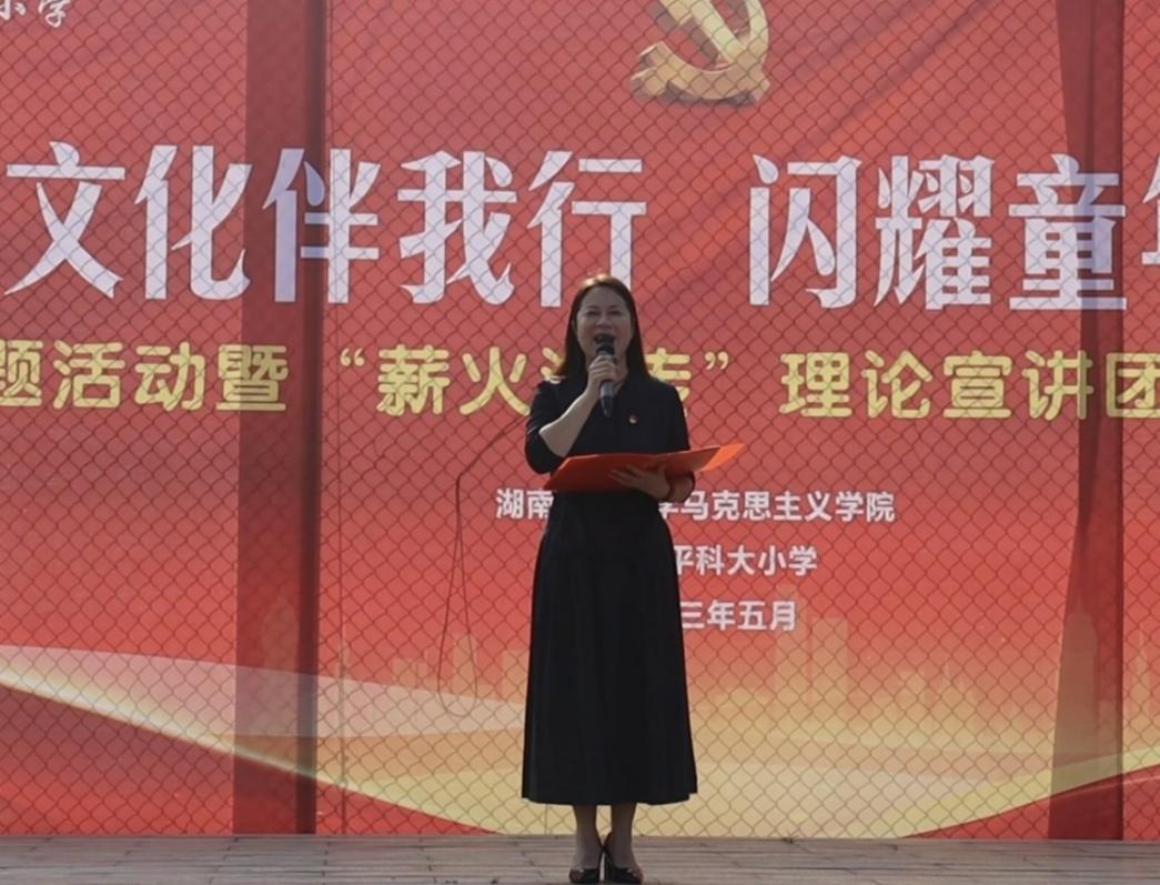 李莉在讲话中表示,要积极推动永利yl23411“薪火湘传”理论宣讲团与学校的友好合作,通过建立宣讲基地、广泛组织宣讲活动等形式,更好地传承红色基因,为小朋友们擦亮奋斗的精神底色、扎实人生根基,培养堪当民族复兴大任的时代新人。