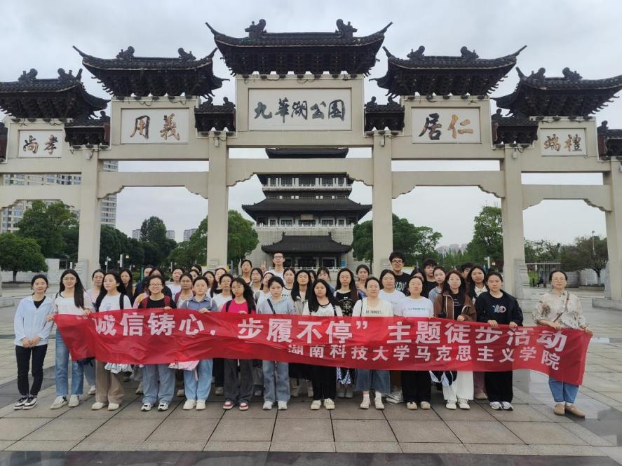 徒步路线以学校第二图书馆孔子像为起点,九华德文化公园为终点,徒步行程近7千米。孔子作为为中国传统文化重要代表,其思想和教育理念对后世产生深远影响,以孔子像为起点,提醒同学们时刻牢记“人而无信,不知其可也”等诚信思想,将诚信融入到日常学习生活中。