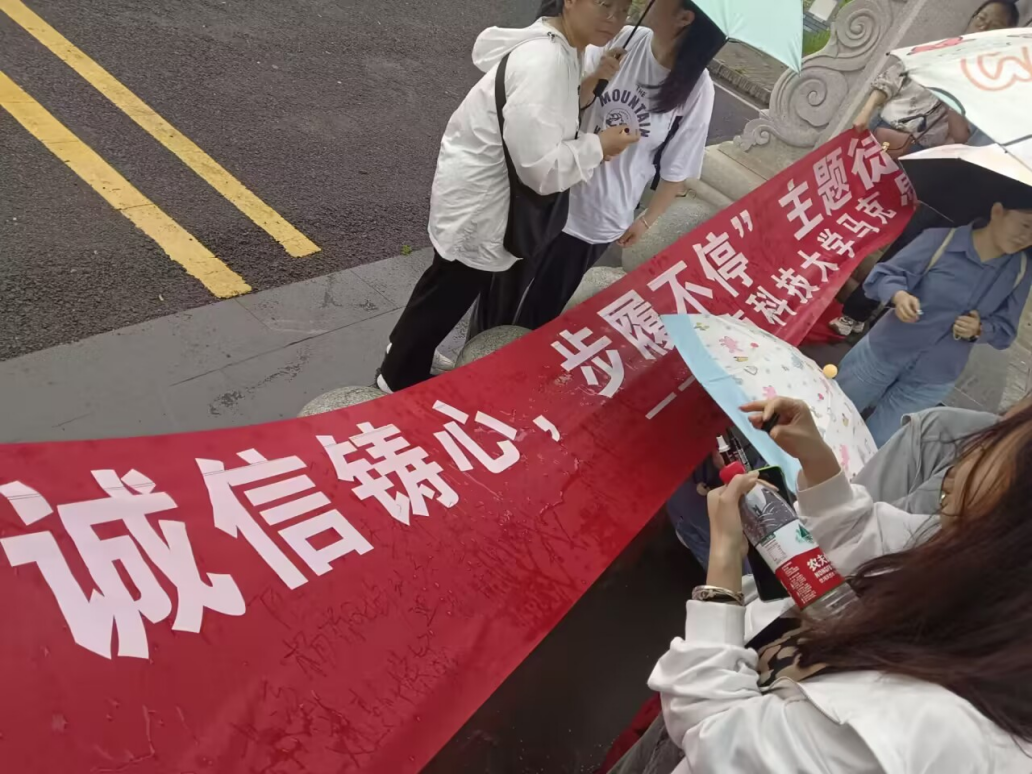 6月11日,我院组织学生党员、院学生干部、助学贷款同学、班团干部等不同群体学生代表以及自愿报名同学开展“诚信铸心,步履不停”主题徒步活动。