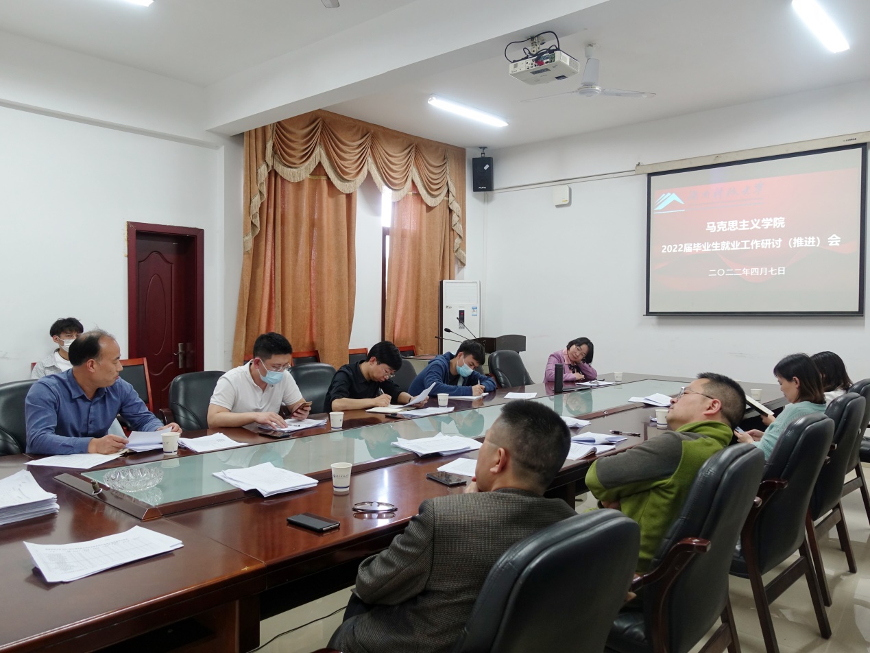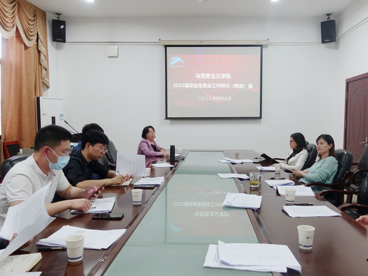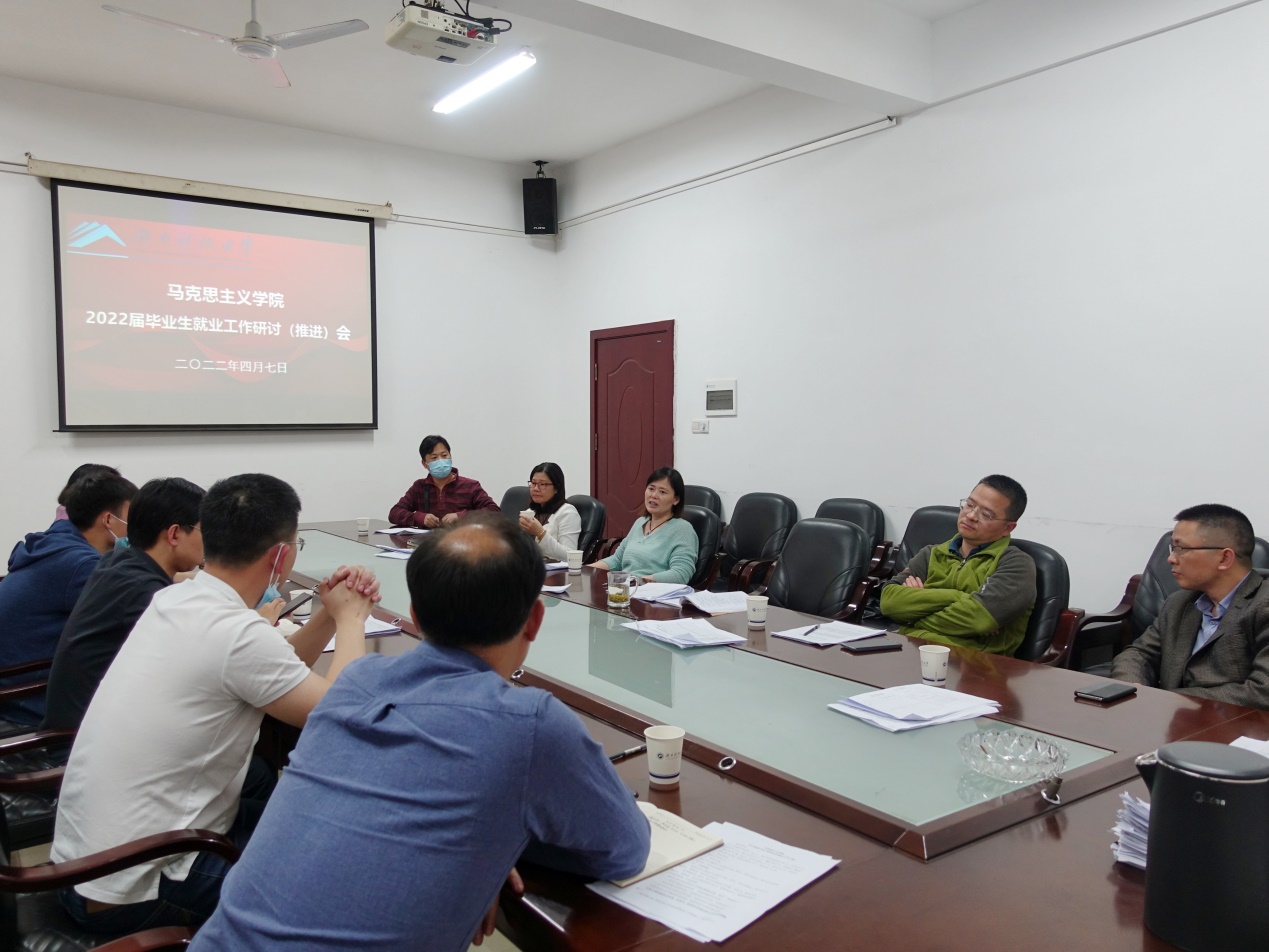 刘正妙传达了学校就业工作会议精神和相关工作安排,强调要明确目标、落实责任,应结合实际情况加强毕业生就业指导工作,增强学生的就业意识,同时要关注重点学生就业,充分利用校友资源,努力为学生就业提供帮助。最后,各位老师针对毕业生就业中的问题进行了充分交流,共同研讨促进2022届毕业生就业办法及其措施。
