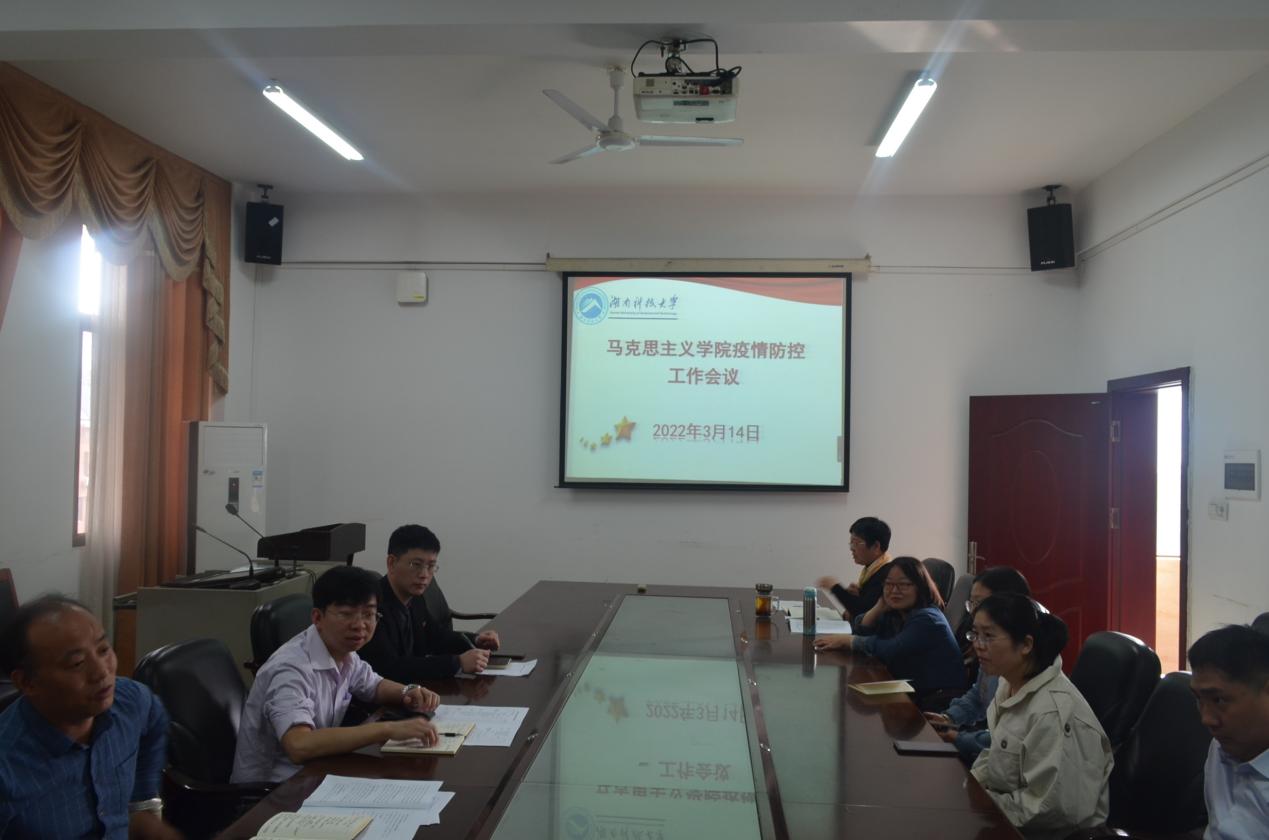 学院党委书记刘正妙讲话并强调会议重点:疫情防控是重大政治任务,马院全体师生应进一步提高思想认识,高度重视疫情防控工作,强化政治担当,科学防控疫情。学院教师要做好表率,尽量少外出参加活动和会议,坚决树牢“非必要不外出”原则。