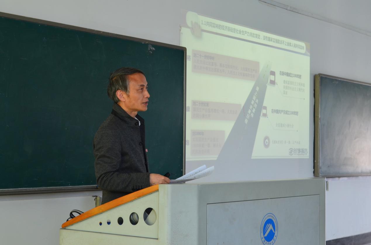4月18日下午五六节课,副校长施式亮在一教402教室为我校本科生上了一堂“形势与政策”课。本堂课以“不断推进全体人民共同富裕”为主题,随着铃声响起,施式亮副校长开始了精彩的讲课。