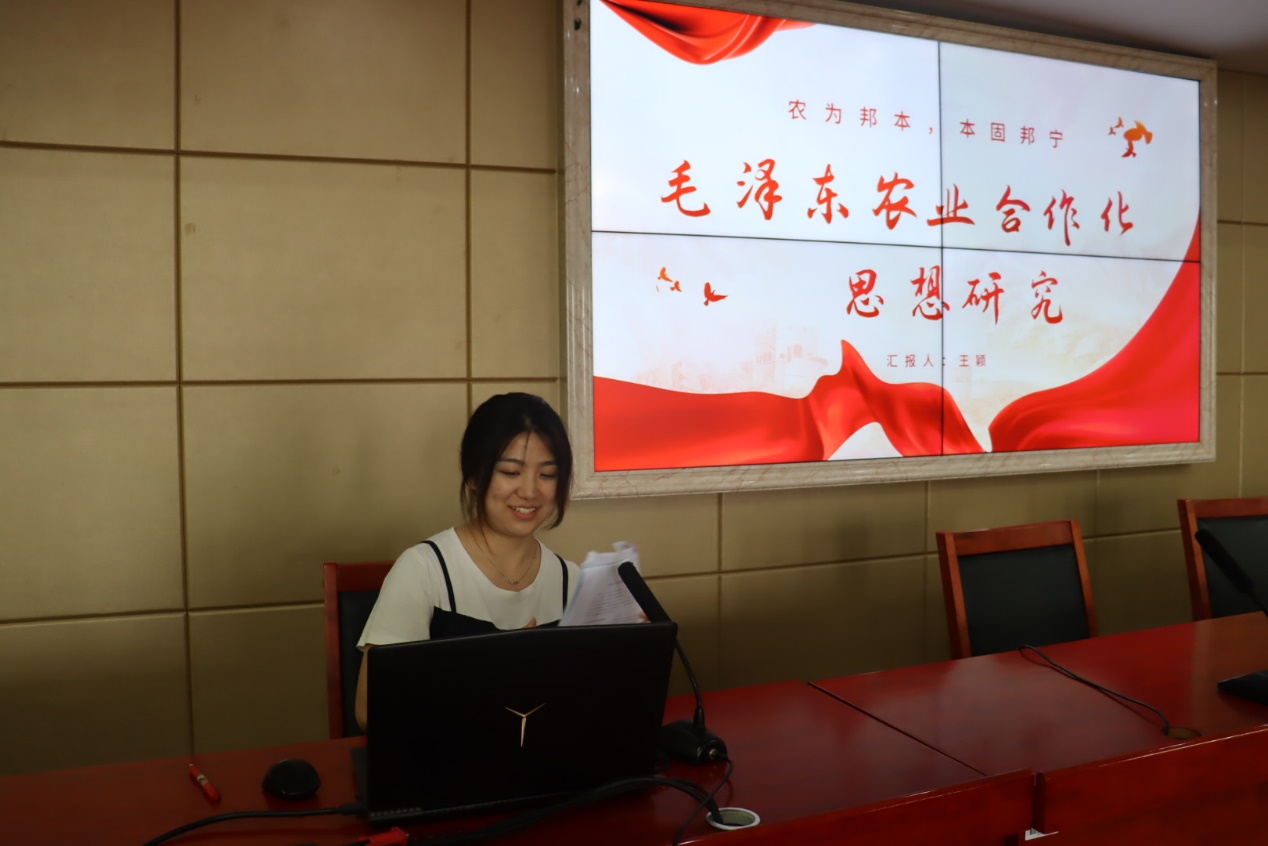 湘潭大学永利yl23411王颖同学以《毛泽东农业合作化思想研究》为主题,围绕其研究背景、理论渊源与实践依据、主要内容、研究展望这四方面展开。王颖同学指出,毛泽东的农业合作化思想作为毛泽东思想中的重要组成部分,从我国当今农村的实际情况出发,实事求是地去协调与农业发展有关的各方面关系,为实现中华民族伟大复兴的中国梦做出贡献。