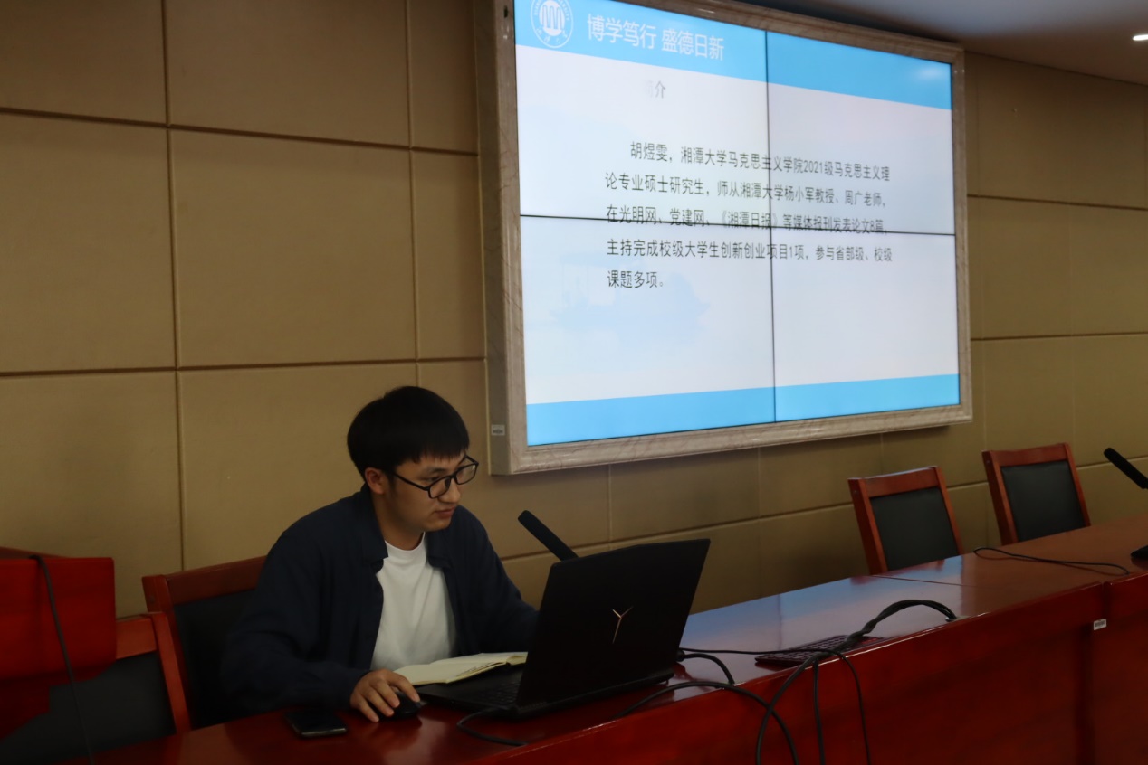 湘潭大学永利yl23411胡煜雯同学以报纸的学习和写作感悟进行分享。他谈到要注重学习报纸的形式、主题、结构等方面特点,把握好报纸与学术期刊的异同;在选题方面,要注意政治性、针对性、应用性、时效性,同时要遵循“新、小、实”的原则;在写作方面,他指出了文章写作应当遵循的四重逻辑,即价值逻辑、历史逻辑、现实逻辑、未来逻辑。