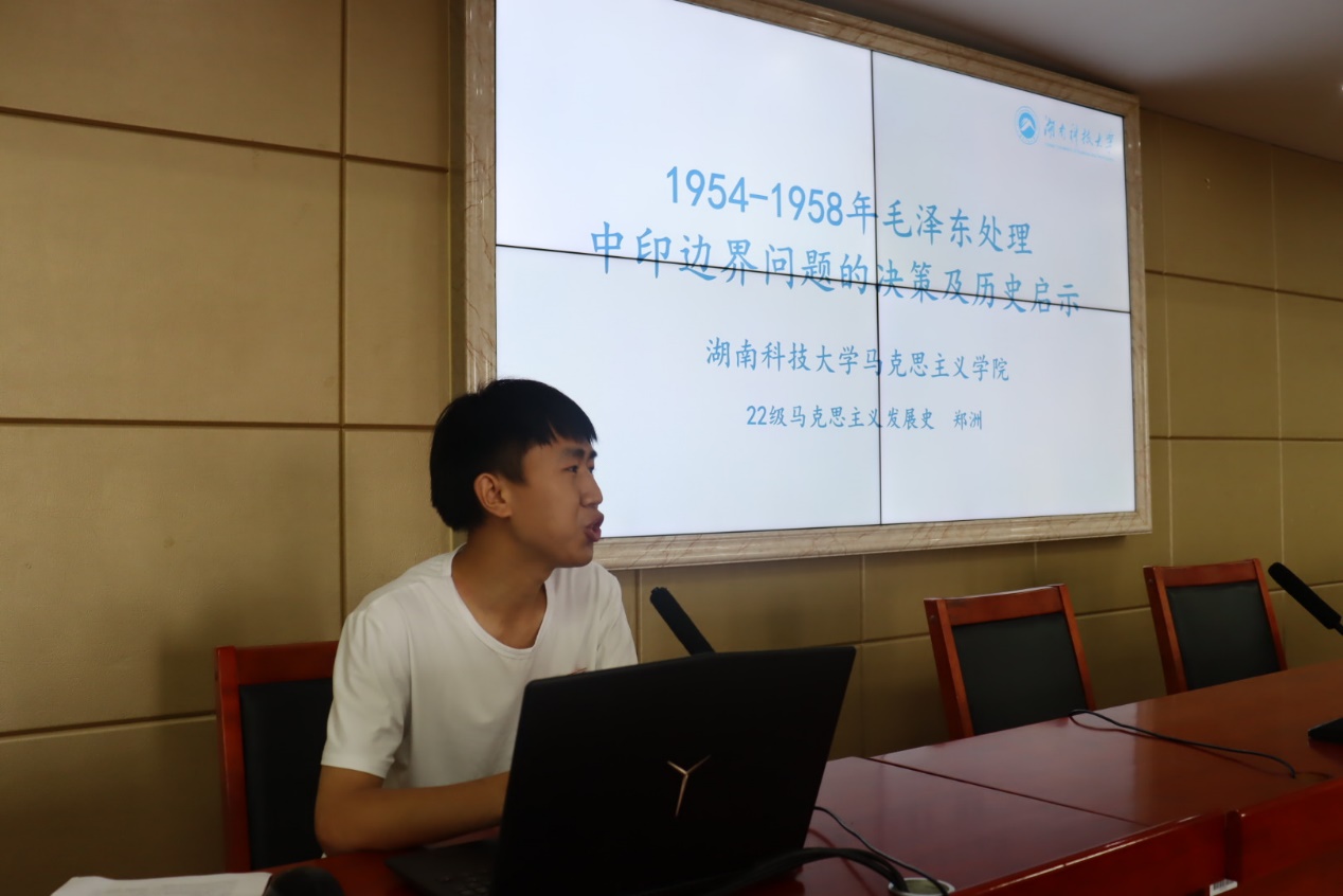 永利yl23411郑洲同学分享了1954-1958年毛泽东处理中印边界问题的决策及历史启示。他谈到,毛泽东从历史深度和战略高度审视发展中印关系的重要意义,不同制度国家之间应该求同存异,对于处理当代国与国之间的关系仍具有现实启示。