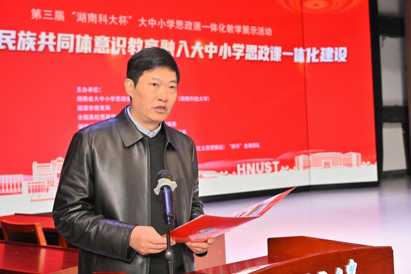 12月6日,第三届“湖南科大杯”大中小学思政课一体化教学展示活动在我校举行。省委教育工委宣传部部长、省教育厅思政处处长许抗出席并讲话。校党委委员、副校长赵前程致辞。