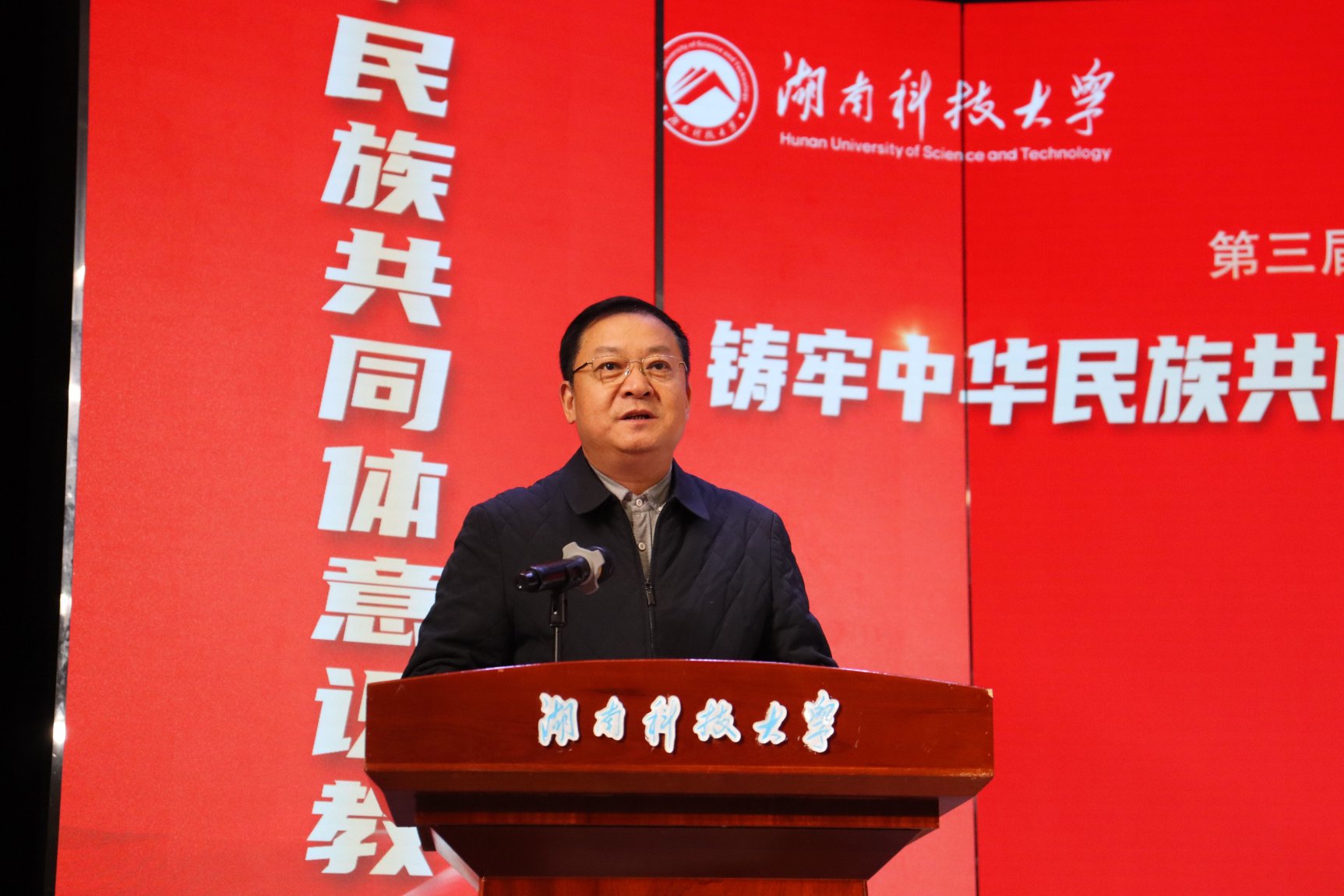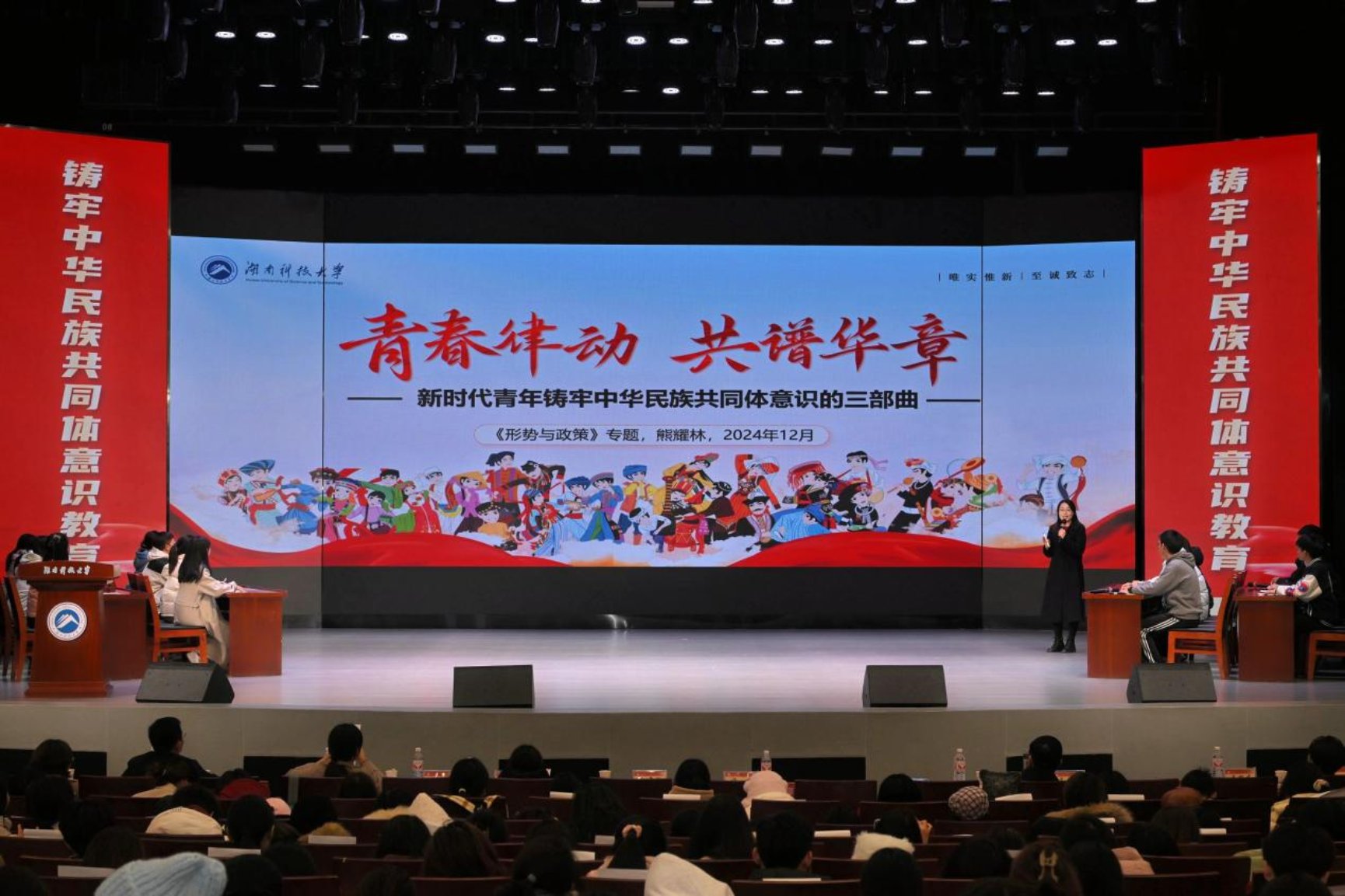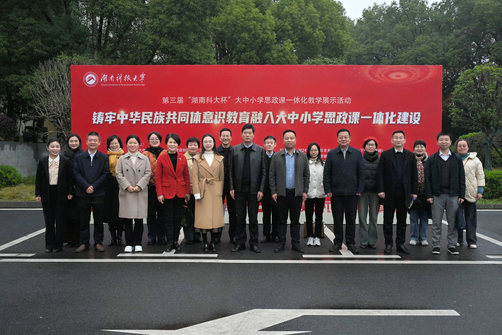 本次活动以“铸牢中华民族共同体意识教育”为主题,由我校联合湘潭市教育局、全国高校思政课“吴怀友”名师工作室、湖南省思想政治工作研究湖南科技大学基地、湖南省高校思想政治工作“禹旭才”名师工作室、湖南省高校思想政治工作“刘正妙”名师工作室、湖南省普通高校思政课《习近平新时代中国特色社会主义思想概论》“韩平”金课团队等单位共同举办,通过“湖上青云”视频号全程同步直播。