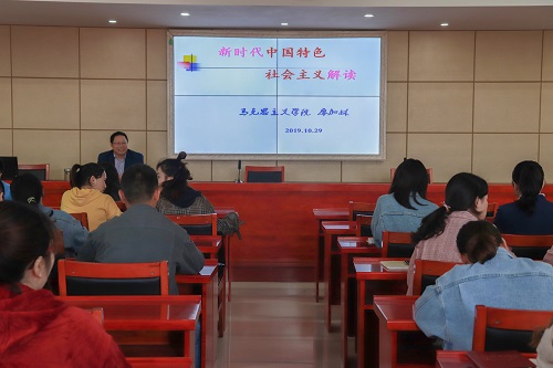 10月29日下午,我院党委书记廖加林教授在立言楼A5-1报告厅给马院全体学生党员上了一堂题为“新时代中国特色社会主义解读”的精彩党课,以回答“中国特色社会主义为什么好”这一问题。