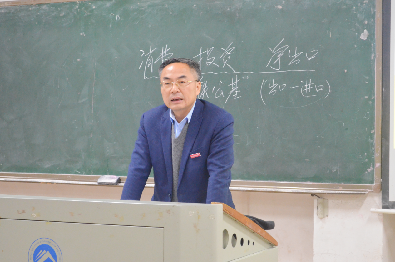 12月30日下午七八节课,我校副校长廖湘岳在五教1-1教室为本科生上了一堂紧扣时事的形势与政策课。本次课堂以“迈向更高质量的经济发展”为主题。随着课堂铃声响起,副校长廖湘岳开始了精彩生动的讲课。
