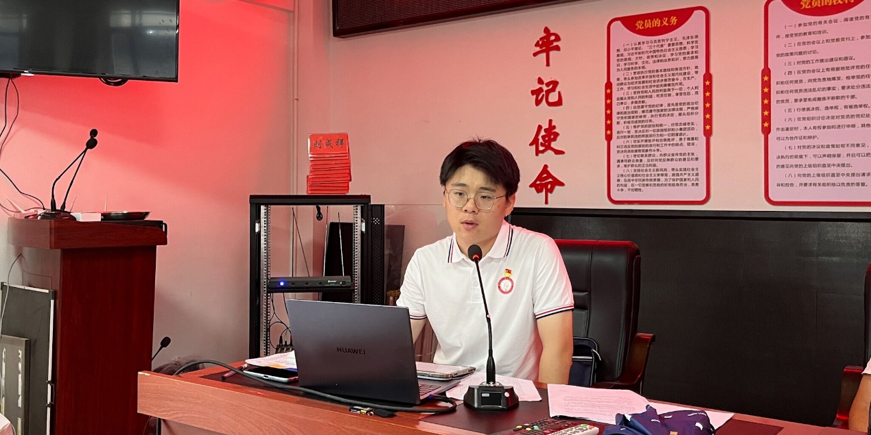 随后,刘图其以党百年奋斗的历史征程为线索,从百年大党经历的峥嵘岁月、创造的辉煌成就、取得的宝贵经验三个维度出发结合大量具体的革命历史实事及生动直观的数据,有力地证明了“只有中国共产党才能救中国”,使在座各位党员深刻认识到党的历史记录的是党的奋斗历程和发展轨迹,述说的是党的重大成就和历史伟业,揭示的是党的成功经验和历史规律,展示的是党的人民情怀和伟大精神。