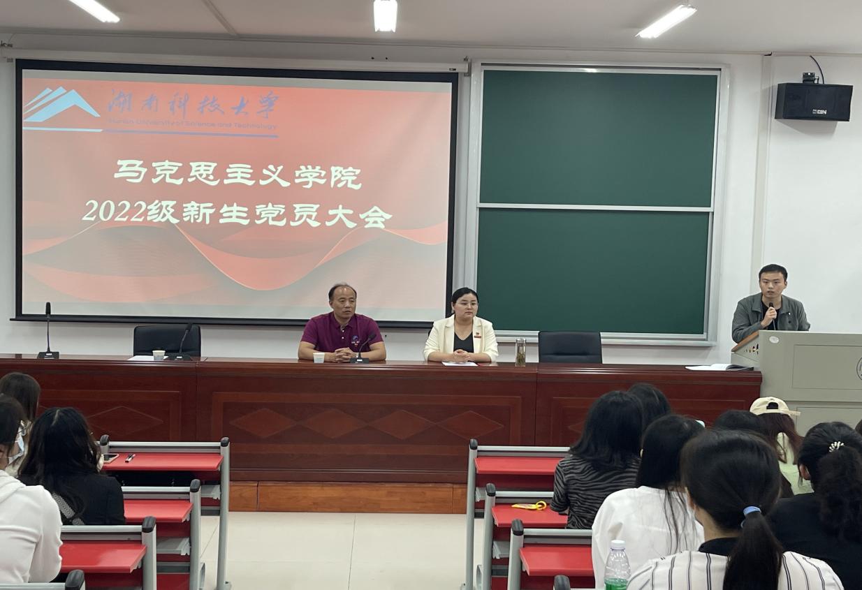 为进一步激励和引导新生党员不忘初心,牢记使命,以更强烈的责任感、使命感在新起点上发挥好党员的先锋模范和旗帜引领作用。9月22日,于湖南科技大学昭潭书院第二教学楼102教室召开永利yl234112022级新生党员大会,学院党委副书记刘图其、兼职组织员管桂翠博士、学生党支部副书记、支部委员、学生党建办成员、2022级全体新生党员参加此次会议。会议由永利yl23411学生党建办主任李立言主持。