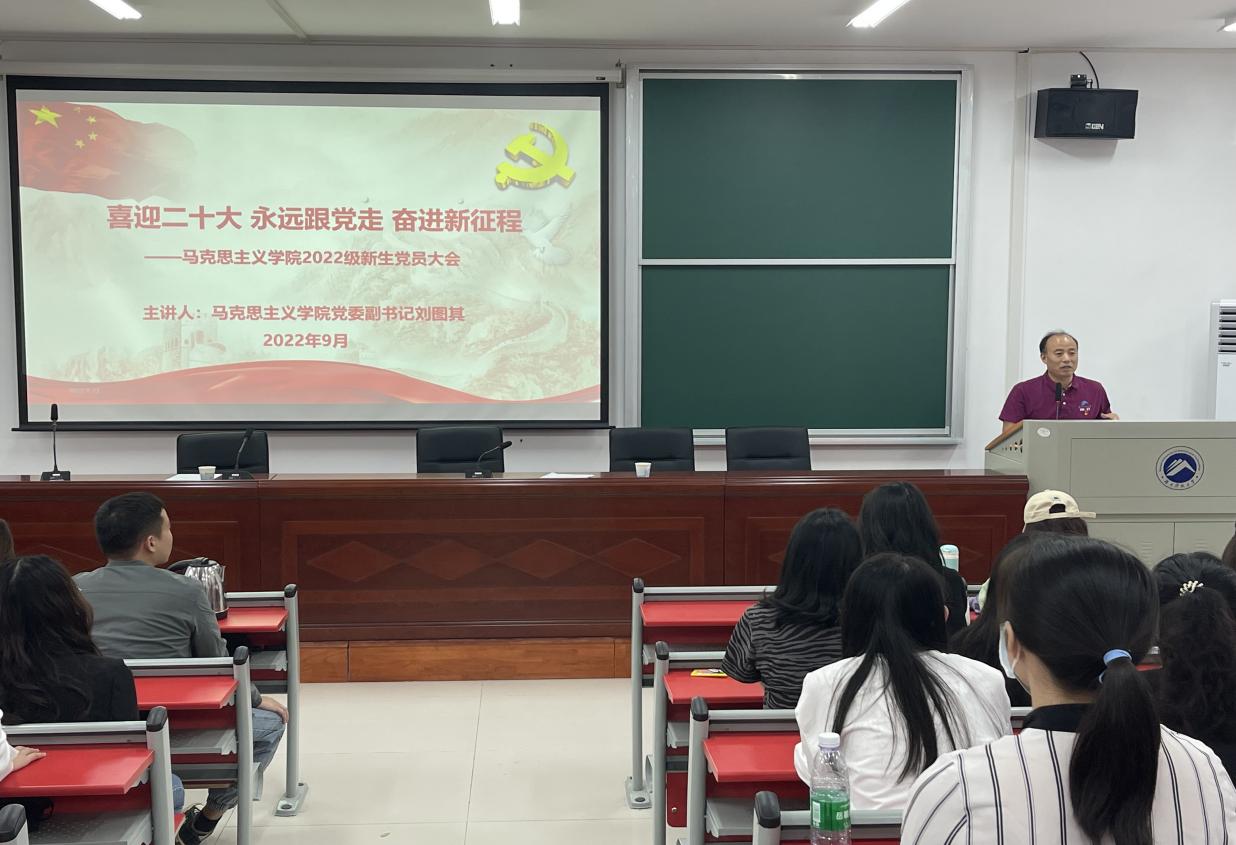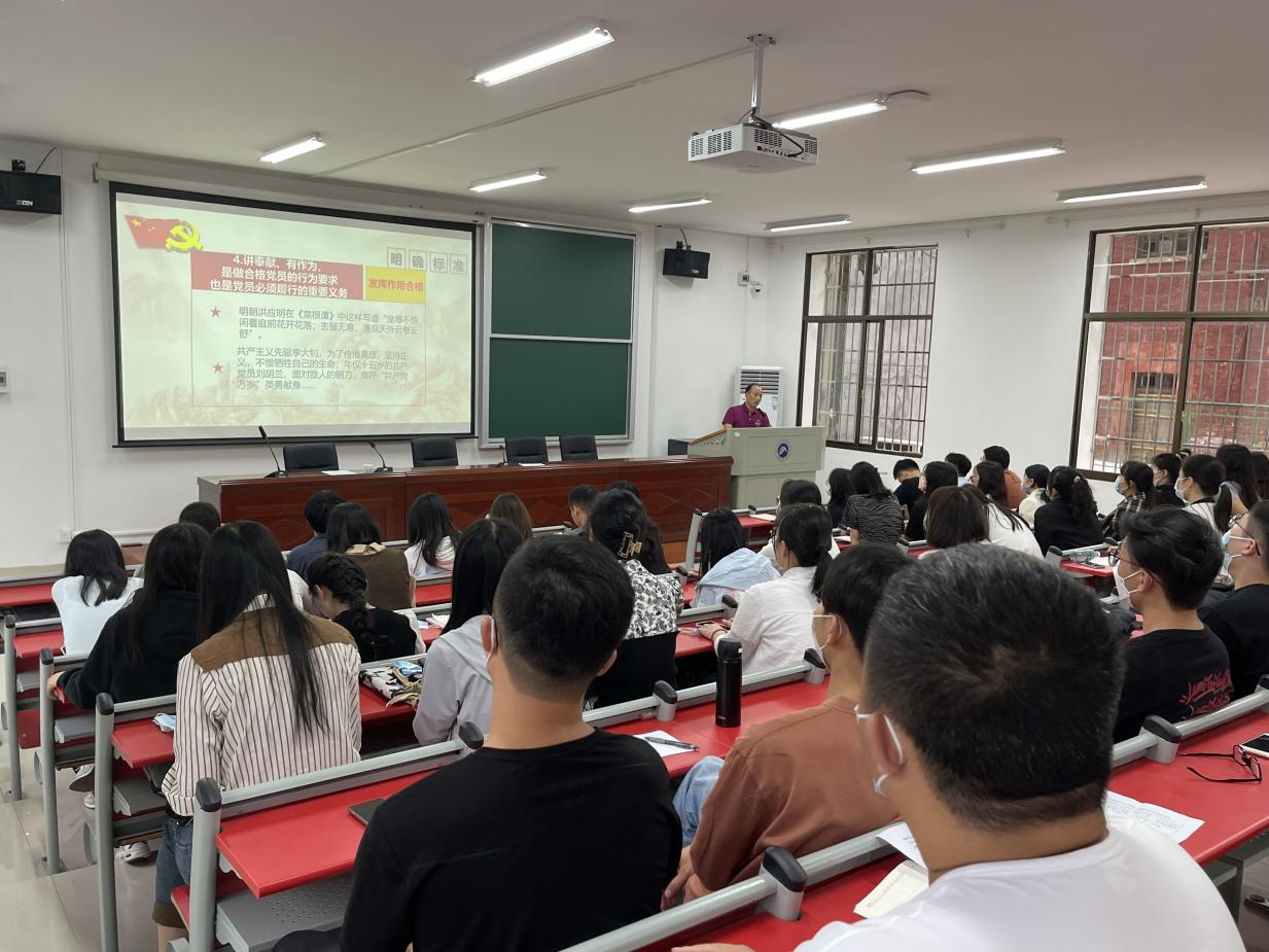 随后,学院党委副书记刘图其为全体新生党员讲授《喜迎二十大,永远跟党走,奋进新征程》为主题的党课。刘图其书记从什么是理想信念、如何坚定理想信念、合格党员标准、如何发挥党员先锋模范作用等方面,深入浅出的阐述了做一个合格党员的要求及其标准,并号召全体党员在学习、生活和工作中,始终要以一个合格党员的标准发挥好党员的先锋模范作用。