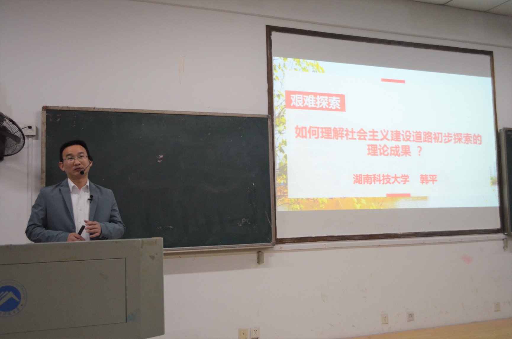 韩平以《艰难探索——如何理解社会主义建设道路探索的理论成果?》为主题,层层递进、环环相扣,讲述了四个问题,即反思与开始:从“以苏为师”到“以苏为鉴”;激情与曲折:防“左”反右跌宕起伏的探索之路;守正与创新:社会主义建设的机制、动力和道路;总结与思考:阳光总在风雨后,历经艰辛见彩虹。韩平的授课内容充实,重点突出,坚持问题导向,以深厚的理论功底,回望社会主义建设道路初步探索那段激情而峥嵘的岁月,积极引导学生正确认识改革开放前后两个历史时期之间关系,正确把握艰辛探索的理论成果;在教学方法上,坚持灌输性和启发性相统一,有效利用信息化教学手段,积极与学生进行互动交流,启发学生进行批判性思考,培养学生独立思考和分析解决问题的能力。同学们一致认为在课堂上有很强的获得感,对如何正确把握艰辛探索的理论成果、如何认识这一时期与改革开放新时期的关系,以及如何认识社会主义建设道路初步探索的意义和经验教训有了更深刻的把握。