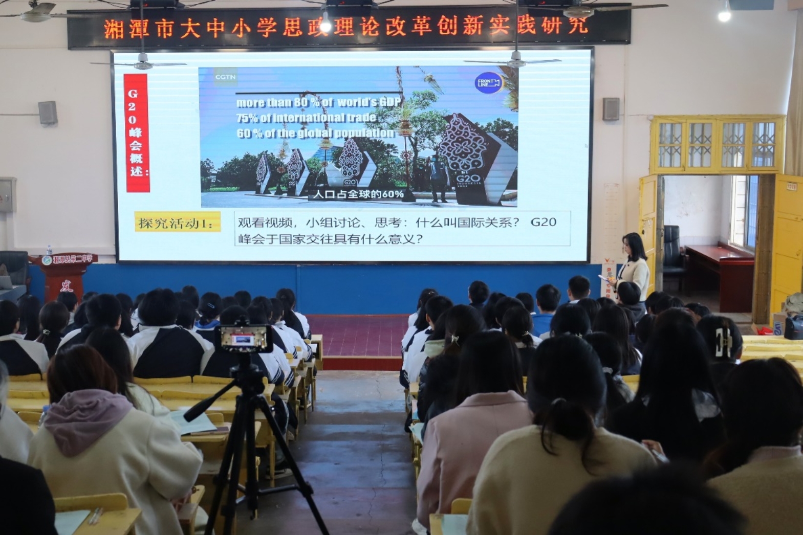 授牌仪式完成后,与会学院师生及其湘潭二中高中一年级一、二班学生共同聆听参与了县二中张佳慧、李湘雅老师的《国家关系》《坚持两个“毫不动摇》思想政治理论改革创新课堂展示,马院吕开武、李育军老师分别对以上老师精彩授课给予充分肯定并做了细致点评。