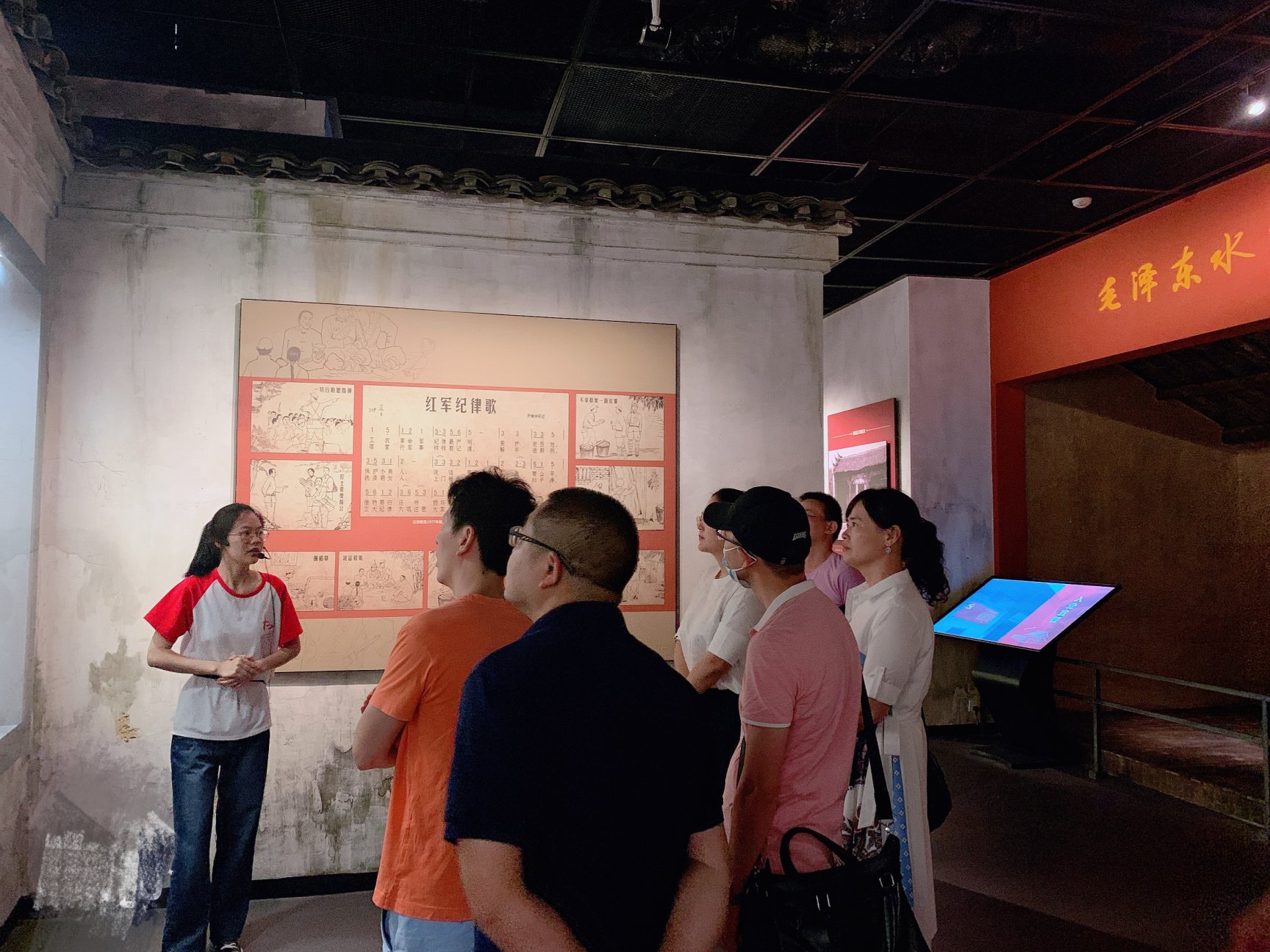 7月14日,概论课教研部全体教师对炎陵红军标语博物馆进行实地参观。炎陵红军标语博物馆是中国第一家红军标语专题博物馆。红军标语博物馆收藏和展示了从1927年到1937年间红军所书写的标语,红军标语的表现形式丰富多样,既有口号标语,又有对联、打油诗,甚至漫画,博物馆内这300多条宣传标语,仿佛是一幅幅浩气凛然、荡气回肠的历史画卷。在博物馆大厅,面对党旗,宋劲松副院长带领大家一起重温入党誓词,铿锵有力的宣誓声响彻大厅。