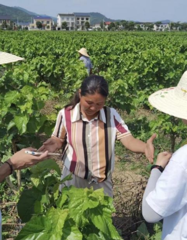 7月13-14日,服务团成员来到杨林乡石屏村桑葚种植基地进行实地调研,基地负责人彭敏女士对基地发展情况进行了详细介绍,当被问及为何选择种植桑葚时,她说:“桑葚树可一树多用,其叶可养蚕及制茶,其果营养价值高且养生,树下亦可养鸡鸭,投资风险小,产出效益高”。彭敏女士敏锐地察觉到此商机后,率先在杨林乡大规模地进行桑葚种植,并与生态区域旅游参观体验相融合,有效拓宽了桑葚种植产业广度,得到了当地政府的大力支持,产生了良好的经济效益,并安排了多名农村妇女在桑葚基地就业。从实地考察和访谈中可看出,彭敏是一位具有自立自强、踏实肯干、开拓创新精神的农村致富女能手,她领头创办的桑葚产业正逐步成为杨林乡的新兴特色名片。访谈中,针对她当前主要通过乡村旅游渠道销售桑葚产品的传统营销模式,服务团成员建议她运用“互联网+”线上线下相结合的营销模式销售产品,更好地提高杨林乡桑葚产品的知名度和美誉度。此外,服务团还参观了彭敏女士以桑葚叶作支撑创办的养蚕基地,桑葚一树多用有效地实现了资源整合,形成了桑葚树一树多用的生态产业链,有力地推动了杨林乡的产业振兴。