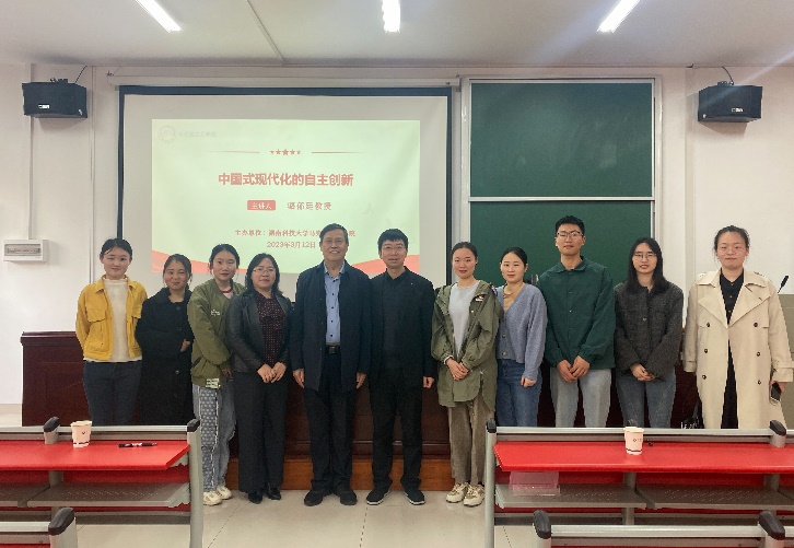 3月12日下午,武汉大学永利yl23411骆郁廷教授应邀为我院师生作题为“中国式现代化的自主创新”的学术讲座。讲座在昭潭书院2教102报告厅举办,学院教师、全体22级硕博研究生参加。讲座由学院党委书记刘正妙主持。