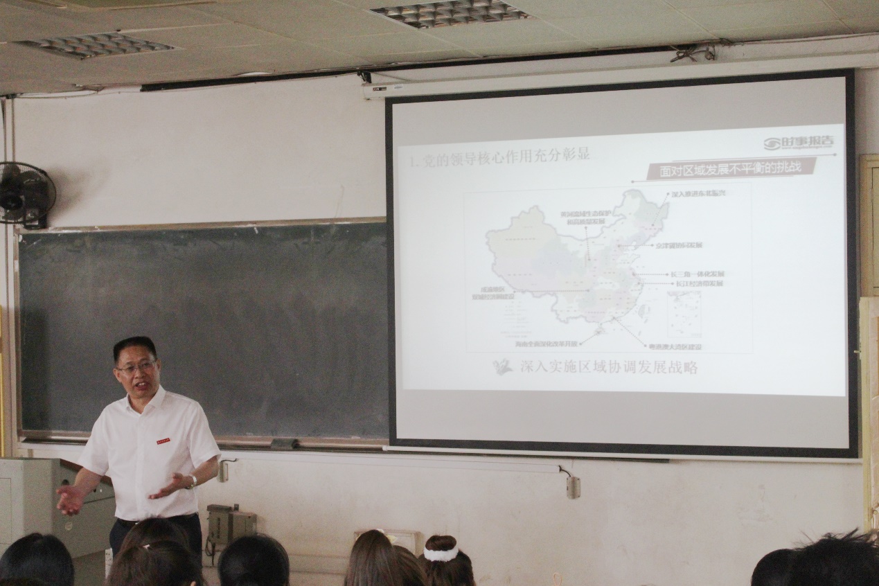 刘友金提到,2021是中国共产党建党100周年,这一百年来,中国脱贫攻坚工作取得巨大胜利,真正实现了“两不愁”“三保障”,为全面建成小康社会、实现第一个百年奋斗目标奠定了基础,为推进实施乡村振兴战略提供了有力支撑,为全球减贫事业贡献了中国智慧和中国方案。值得一提的是,刘友金不仅阐述了中国经济发展的现状及影响,更将自身实际经历和感悟融入其中,加深了同学们对中国改革发展的理解。之后,刘友金着重谈到,中国如今的成就离不开中国共产党的正确领导,中国共产党是中国人民最可靠的主心骨,是中华民族复兴征程上最坚强的领导核心,党中央的判断力、决策力、行动力在发展全局中具有决定性作用。