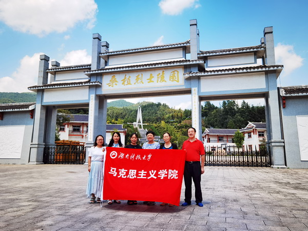 绵绵群山,蜿蜒澧水。 8月26日,当基础教研部、党支部的教师驱车来到桑植县时,在碧水青山间,就感受到了这片土地上厚重的历史文化气息。文脉悠长的桑植,是风情万种的土家栖息地,是开国元帅贺龙的故乡,是湘鄂边、湘鄂西、湘鄂川黔革命根据地的策源地和中心地,也中国工农红军第二方面军长征出发地,曾饱经战争烽火的洗礼。