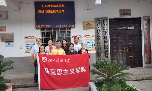 心系民生,筑梦行远。 8月 28-29日,基础教研部、党支部的教师在桑植县芙蓉桥白族乡下坪村进行实地调研。白族乡下坪村是国家级深度贫困村,这里虽然资源丰富、风景秀美,但长期以来“养在深山”,鲜有人知。从桑植县城往西北方向行进 52公里,汽车在蜿蜒的山路间盘旋半小时后,教师们来到了这一村庄,与省气象局驻桑植下坪村帮扶工作队、村委负责人座谈,切身体会这里正在发生的可喜变化。自 2018年 3月 20日省气象局驻桑植下坪村帮扶工作队到来后,下坪村开始绽放出巨大的发展活力。振兴乡村经济,发展产业是关键。工作队对下坪村的土壤、气候、环境进行了多方论证,结合当地天然富硒的土地资源优势,因地制宜地帮助村民建成白茶、小香薯、粽叶基地,建立起集种植、仓储、销售、管理为链条的发展模式,确保农产品销售无风险。在工作队的资助下,村里完成了 3个组 70余户饮水入户安装工程, 4条两公里左右的通组公路已完成了窄路加宽与硬化。全村一共修建了 18 6盏路灯,将夜晚的村庄照得通亮,也照暖了村民们的心。另外,在国家的政策支持下,下坪村与其它邻近村集合各方力量修建了安置房,为条件特别差、家处偏僻的贫困居民提供良好的居住环境,获得村民的交口称赞。“众人拾柴火焰高”,在大家的共同努力下,该村的脱贫任务目前已基本完成,预计今年人均纯收入将超过4000元。
