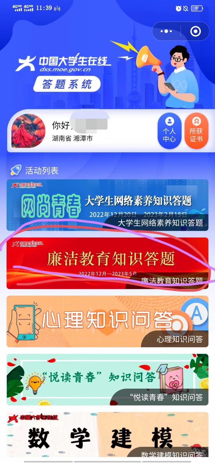 一、知识问答。请关注“中国大学生在线”微信公众号,点击菜单栏“廉洁教育”参与答题,或登录中国大学生在线活动平台参与答题(具体操作见附件一)。请以班为单位上交答题截图,文件名为班级名称+答题截图,并打包发邮箱:2220353620@qq.com。该活动参与情况作为优秀班级参评依据。