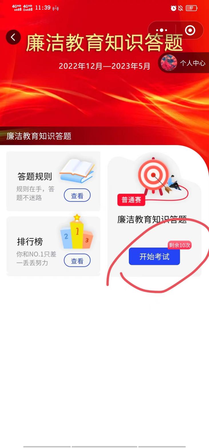 第四步,输入信息后,点击“廉洁教育知识答题”。