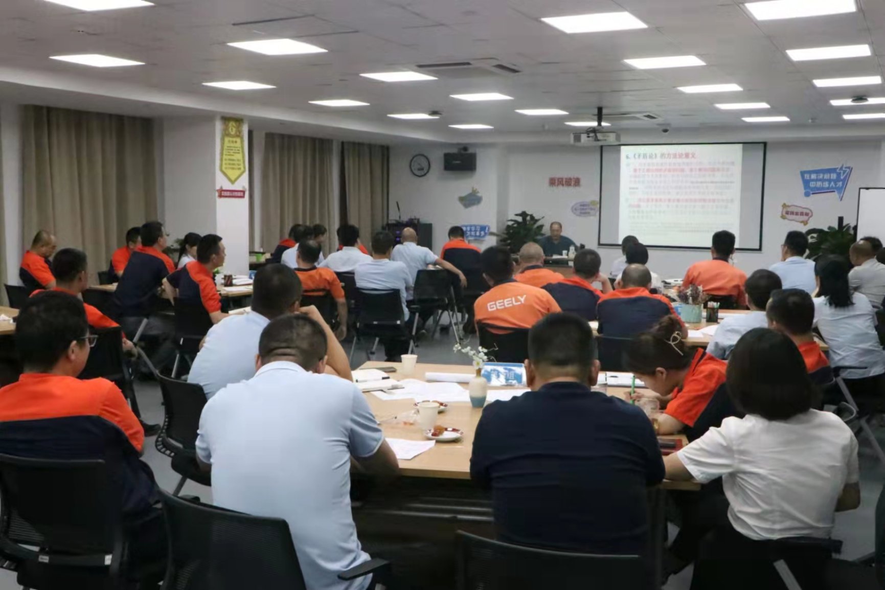 9月19日下午,应湖南吉利汽车部件有限公司(吉利控股集团湘潭基地)邀请,为了配合吉利集团上下“深入学习两论,推动企业发展”主题教育活动,我院博士生导师罗建文教授在吉利集团的吉利学堂,给吉利集团湘潭基地的中高层管理人员做了“从《矛盾论》到企业经营管理的矛盾分析方法”的专题讲座。讲座由湘潭基地的总经理陈磊先生主持,基地的各部部长、分销中心主任和各事业单位的管理负责人共90多人参加了报告会。