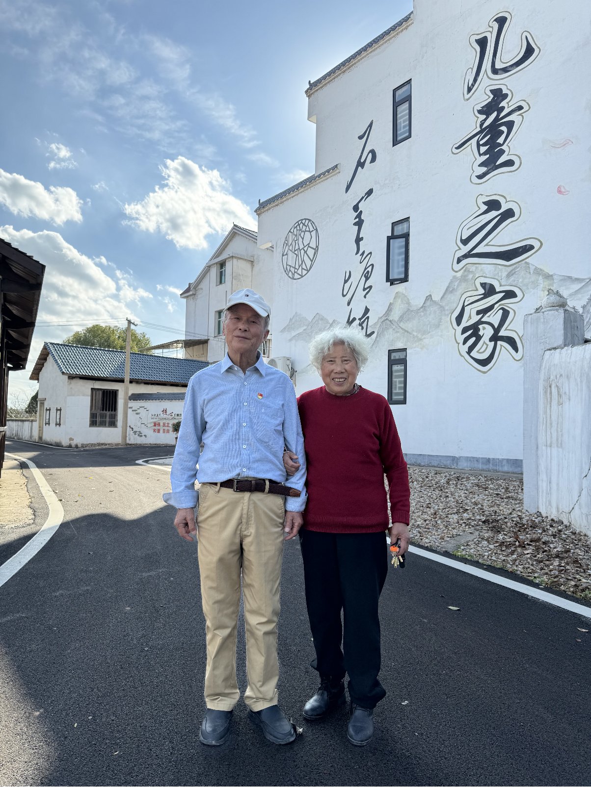 夏昭炎夫妇在石羊塘镇“儿童之家”前合影