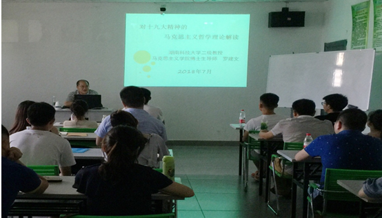应湖南城建职业技术学院邀请,我院博士生导师罗建文、赵惜群教授分别于2018年7月11日下午、12日上午给该校新入职老师做了“对十九大精神的马克思主义哲学理论解读”及“做党和人民满意的好老师”的专题讲座。