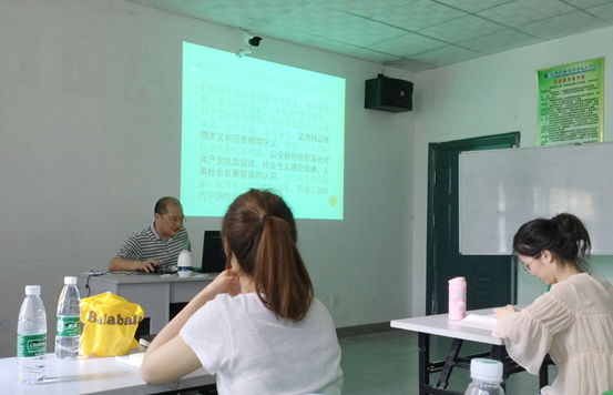 罗教授围绕“从党的十二大到十九大坚持和发展中国特色社会主义的原因”、“习近平新时代中国特色社会主义思想的新内涵”、“准确理解社会主要矛盾的‘变’与‘不变’及其理论意义和现实意义”、“从马克思主义群众观点来深刻把握习近平的人民主体论思想和人民情怀”等四个方面展开讲座。他在讲座开篇时分享了自己的工作经验,并对新入职教师提出了四点希望:1.要有强烈的事业心;2.要有强烈的责任心;3.要有宽广的胸怀;4.要有丰富的知识和良好的品行修养。他表示新入职老师在学习本专业的同时,应多了解中国近现代史,密切关注时事政治,牢固树立政治意识、大局意识、核心意识、看齐意识,自觉在思想上、政治上、行动上同党中央保持高度一致。罗教授在讲座中指出坚持和发展中国特色社会主义是由其理论逻辑、历史逻辑和时间逻辑决定的,历史和现实证明只有社会主义才能救中国,只有中国特色社会主义才能发展中国,明确阐述了新思想是怎么来的,以及如何准确把握习近平新时代中国特色社会主义思想的重要意义和我国现阶段社会主要矛盾的“两不变”等问题。