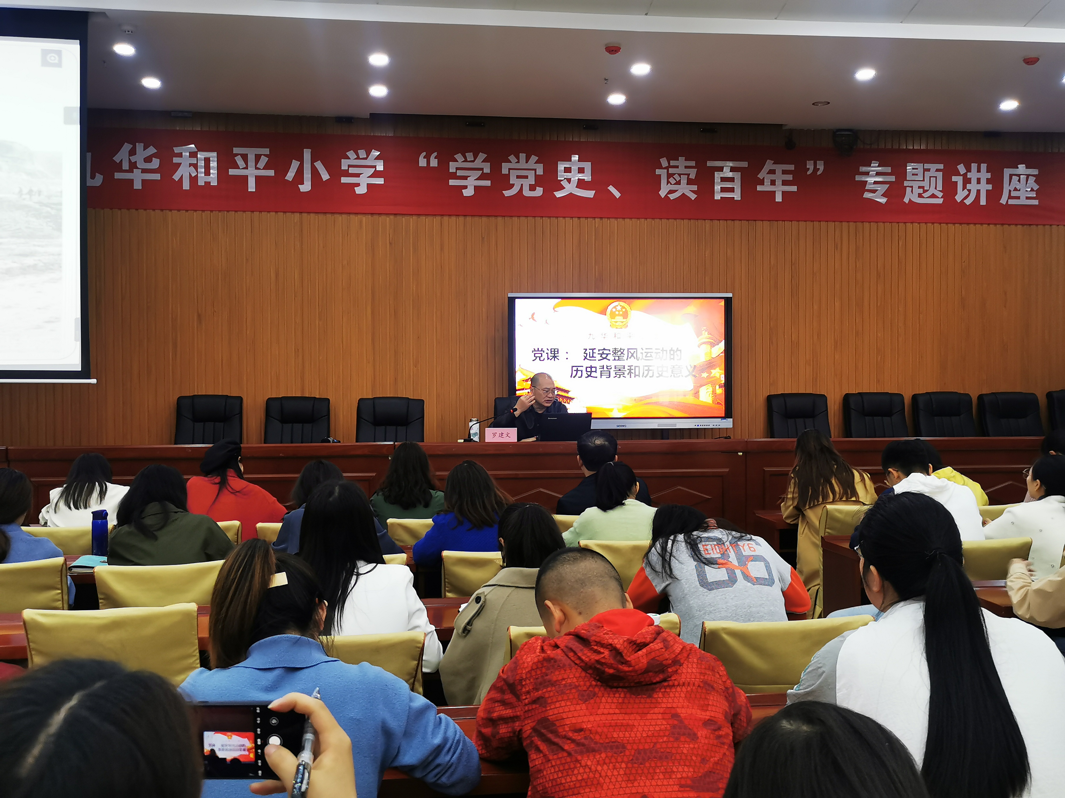 湘潭市九华和平教育集团在全体教师中开展“学党史、读百年”专题学习活动,特邀请我院罗建文教授做《延安整风运动的历史背景和伟大历史意义》的专题讲座。罗教授从延安整风运动的历史背景、延安整风运动的历史条件、延安整风运动的历史进程、延安整风运动的深远影响和现实意义等五个方面进行了系统的讲述。罗教授着重讲述和分析了延安整风运动前党内存在的教条主义、主观主义和党八股等思想路线错误,给我们党的事业带来的巨大损失和严重影响,分析了为什么只有肃清党内教条主义、主观主义、宗派主义等错误作风才能夺取抗日战争和解放战争的胜利;着重讲述了延安整风运动的深远影响和历史意义,让广大教师明白历史事实:通过延安整风,中国共产党不仅初步确立了实事求是的思想路线,破除了将苏共经验和共产国际指示神圣化的教条主义,而且还将马克思主义中国化的第一个理论成果——毛泽东思想确定为党的指导思想,从而极大推动了马克思主义中国化的进程;通过这次整风运动,普遍提高了全党的马克思主义理论水平,端正了思想方法和政治路线,更清楚地认识了党史上的重大路线是非问题,从而使党在政治上、思想上、组织上达到了空前团结和统一,为夺取抗日战争和中国革命的最终胜利奠定了坚实基础;延安整风运动让中国共产党不仅从政治上、军事上、组织上走向了成熟,而且从思想上、理论上、制度上也走向了成熟。罗教授最后结合当今开展的党史教育主题活动,着重分析了学习这段历史的现实意义:历史是最好的教科书,“学史可以看成败、鉴得失、知兴替”;历史是最好的营养剂,善于总结和学习历史经验,要不断地从历史中吸取营养;历史是最好的清醒剂,历史不仅提供经验,还提供教训,可以使我们保持头脑清醒,吃一堑长一智,使我们不再重犯历史上曾经犯过的同类错误。