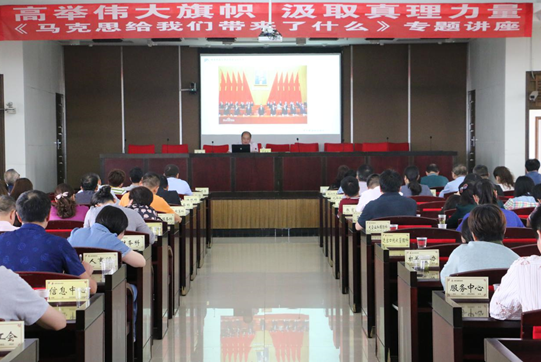 2018年6月4日下午,湘潭市国税局机关大会议室正方挂着《高举伟大旗帜 汲取真理力量》《马克思给我们带来了什么》专题讲座的红底白字横幅。这是我校永利yl23411罗建文教授应邀为湘潭市国税局机关全体干部、基层局分管党建工作局领导、各单位纪检组组长做主题为“马克思给我们带来了什么”的专题讲座。讲座由湘潭市国税局党组书记、局长肖辉同志主持,在潭的市局领导出席了会议。
