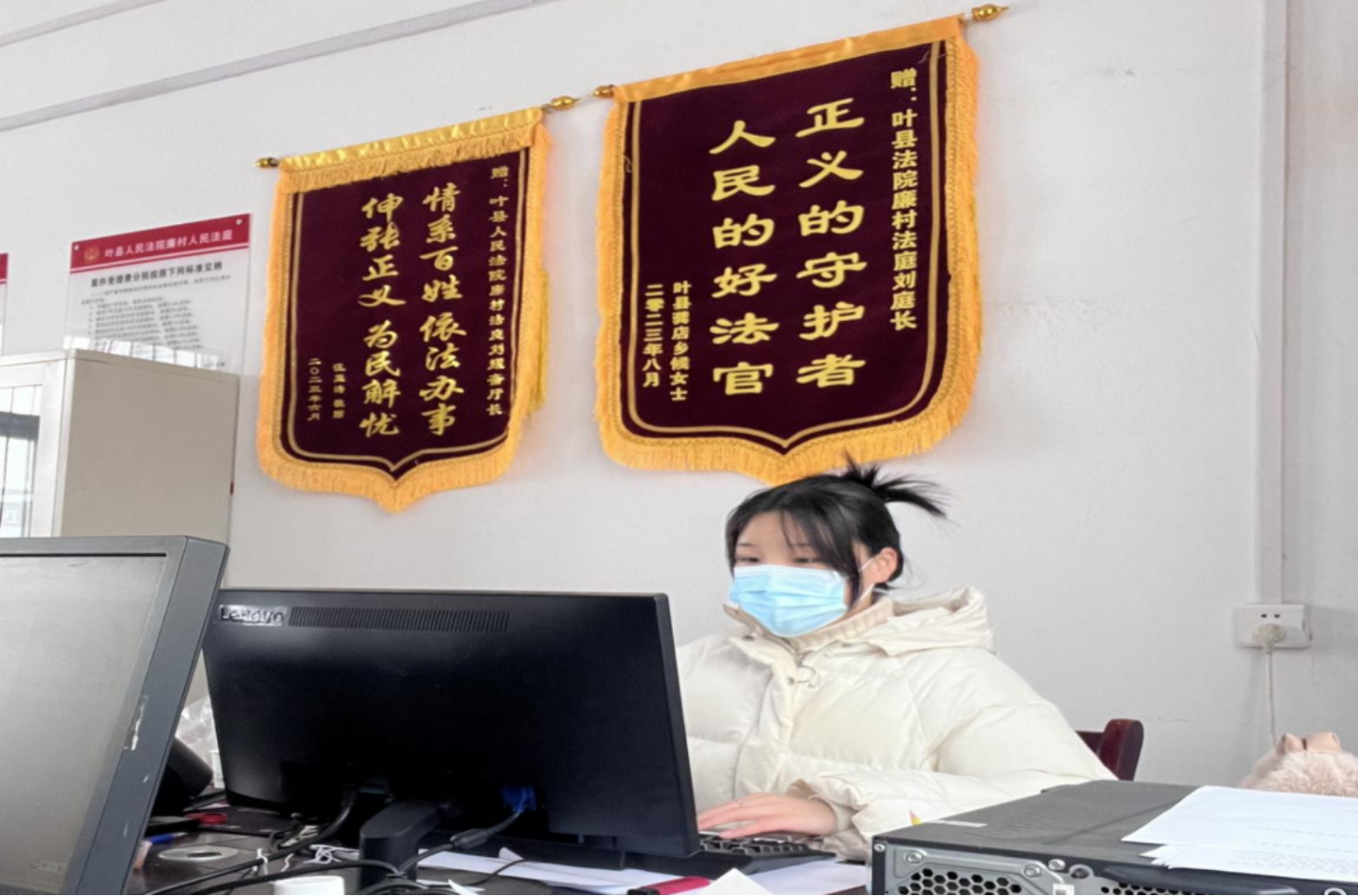 ▲王文娇同学在叶县人民法院查阅卷宗
