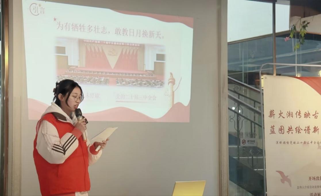 为深刻领悟党的二十届三中全会精神,激发青年在改革进程中的创新活力。12月13日,我院“薪火湘传”宣讲团走进窑湾书屋,开展了一场以“薪火‘湘’传映古街,蓝图共绘谱新篇”为主题的宣讲活动。