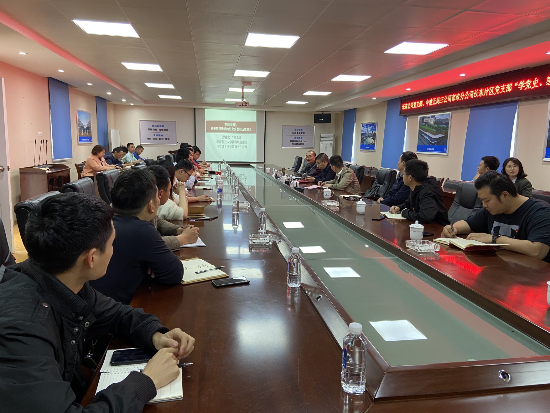 4月16日下午,我院博士生导师罗建文教授应邀在中建五局三公司和长东公司给干部职工讲党课。长东公司总经理胡塞鸿、长东公司副总经理龚奇伟、中建五局三公司党委副书记、纪委书记江升科等机关干部以及两家公司的党支部书记和干部党员80多人参加了宣讲会。讲座在浏阳河大桥项目部会议室举行,由龚奇伟主持,江升科书记作了总结讲话。