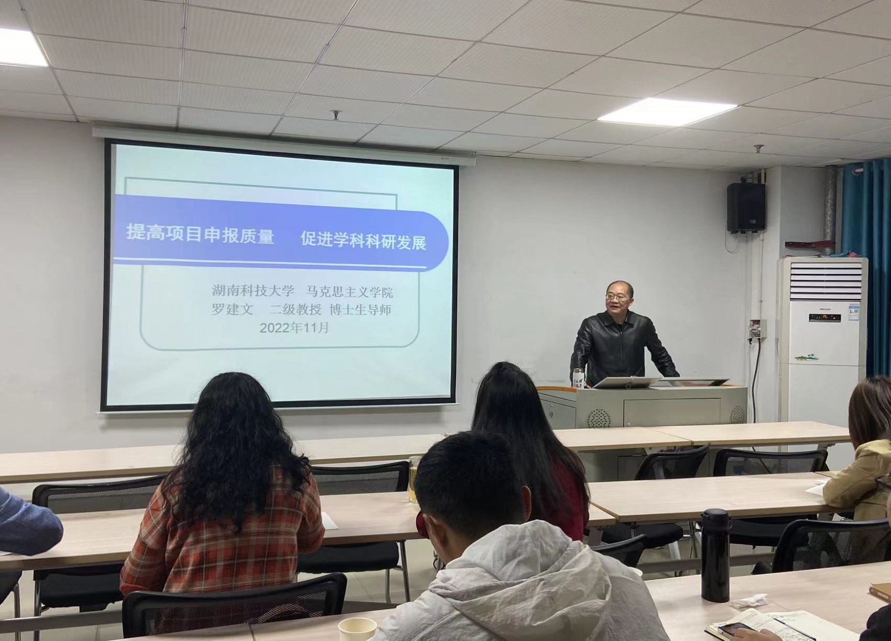 2022年11月26日上午,我院博士生导师罗建文教授应湖南财政经济学院之邀为体育经济和管理学院作了题为《提高项目申报质量,促进学科科研发展》的学术讲座。讲座由湖南财政经济学院体育学院院长刘伟教授主持,苏玲副校长、体育学院齐立斌副院长以及体育学院、经济管理学院、永利yl23411的相关教师和有意向申报国家社科基金项目的多学科教师参加了本次讲座。