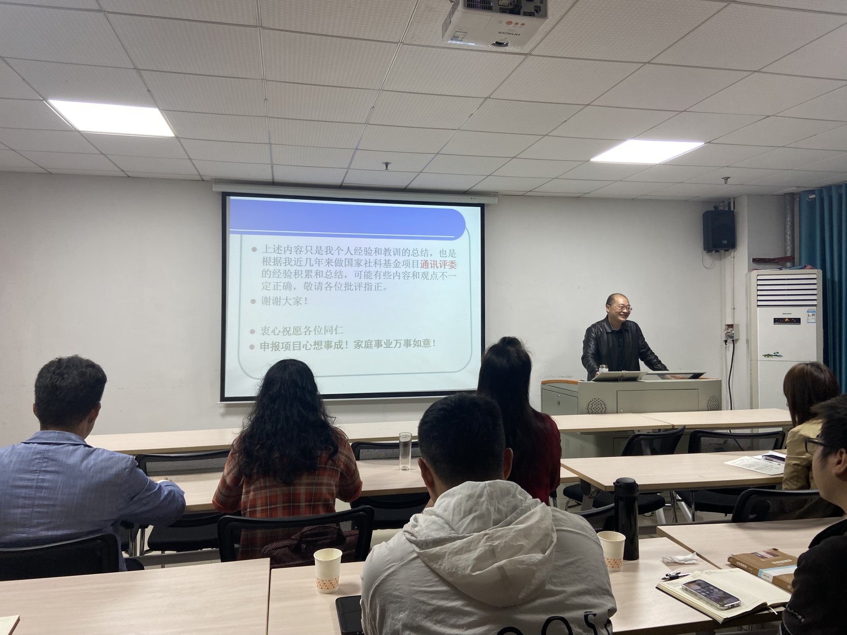 罗建文教授结合自身多年的学科科研与项目评审经验,围绕着“科研与学科的关系”“学术积累与课题申报的关系”“结合财政经济学院实际情况怎样做好学科建设”“项目培育与课题申报”“申报书的填写要求和规范”等方面,并通过项目申报实际范例深入浅出的进行了讲授。罗建文教授还鼓励教师们做学问要讲究一个长期的“日积月累”,要有耐性有韧性,扎扎实实脚踏实地,提高自我的学术功力与学术定力。本次讲座历时两个多小时,罗教授以渊博的学识、风趣幽默的语言、旁征博引的讲述,使得在场所有教师表示深受启发。