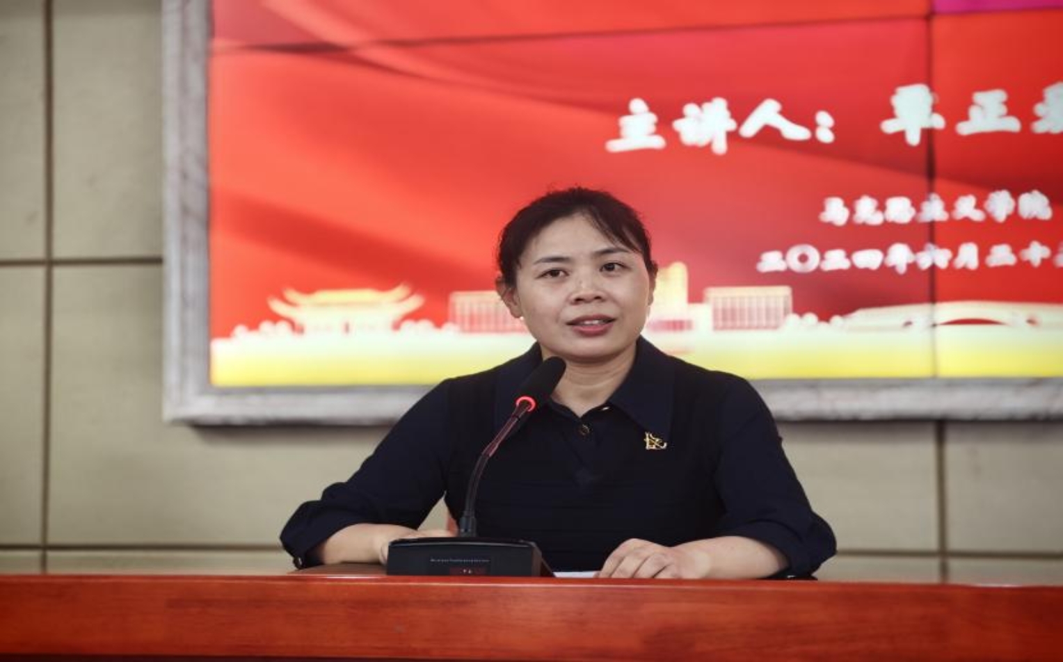 6月25日下午,中共湖南省委党校(湖南行政学院)覃正爱教授应邀在立言楼A5-1为我院师生作题为“中国为什么需要马克思主义”的学术讲座。讲座由学院副院长黄爱英教授主持。