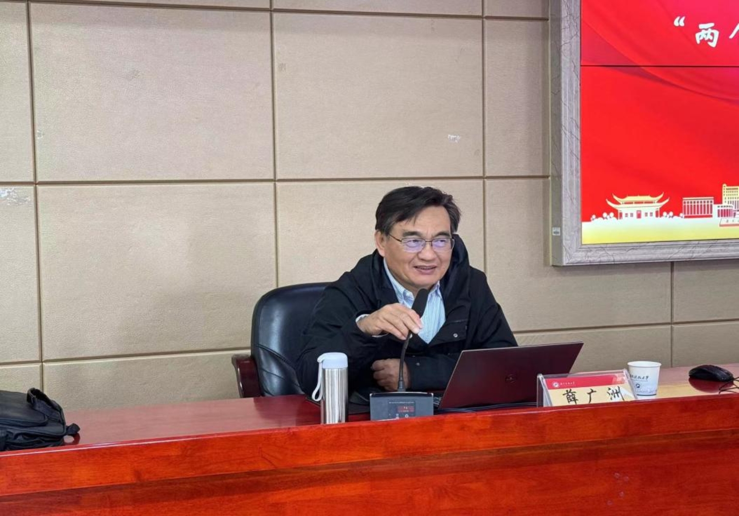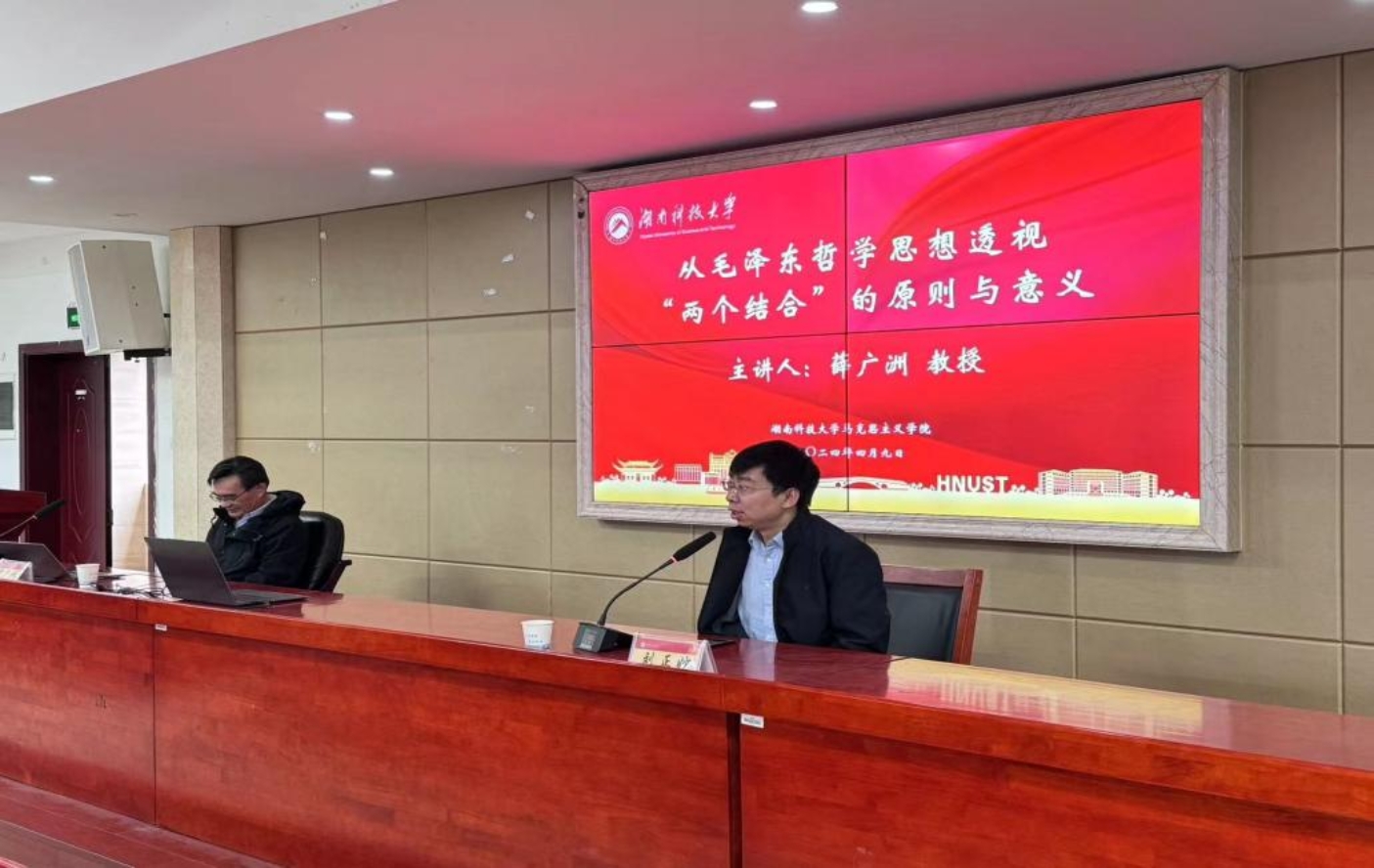 4月9日上午,毛泽东哲学思想研究会副会长、中国特色社会主义理论研究会执行会长、中共中央党校薛广洲教授在立言楼A5-1报告厅为我院师生作题为“从毛泽东哲学思想透视‘两个结合’的原则与意义”的学术讲座,讲座由学院党委书记刘正妙教授主持。
