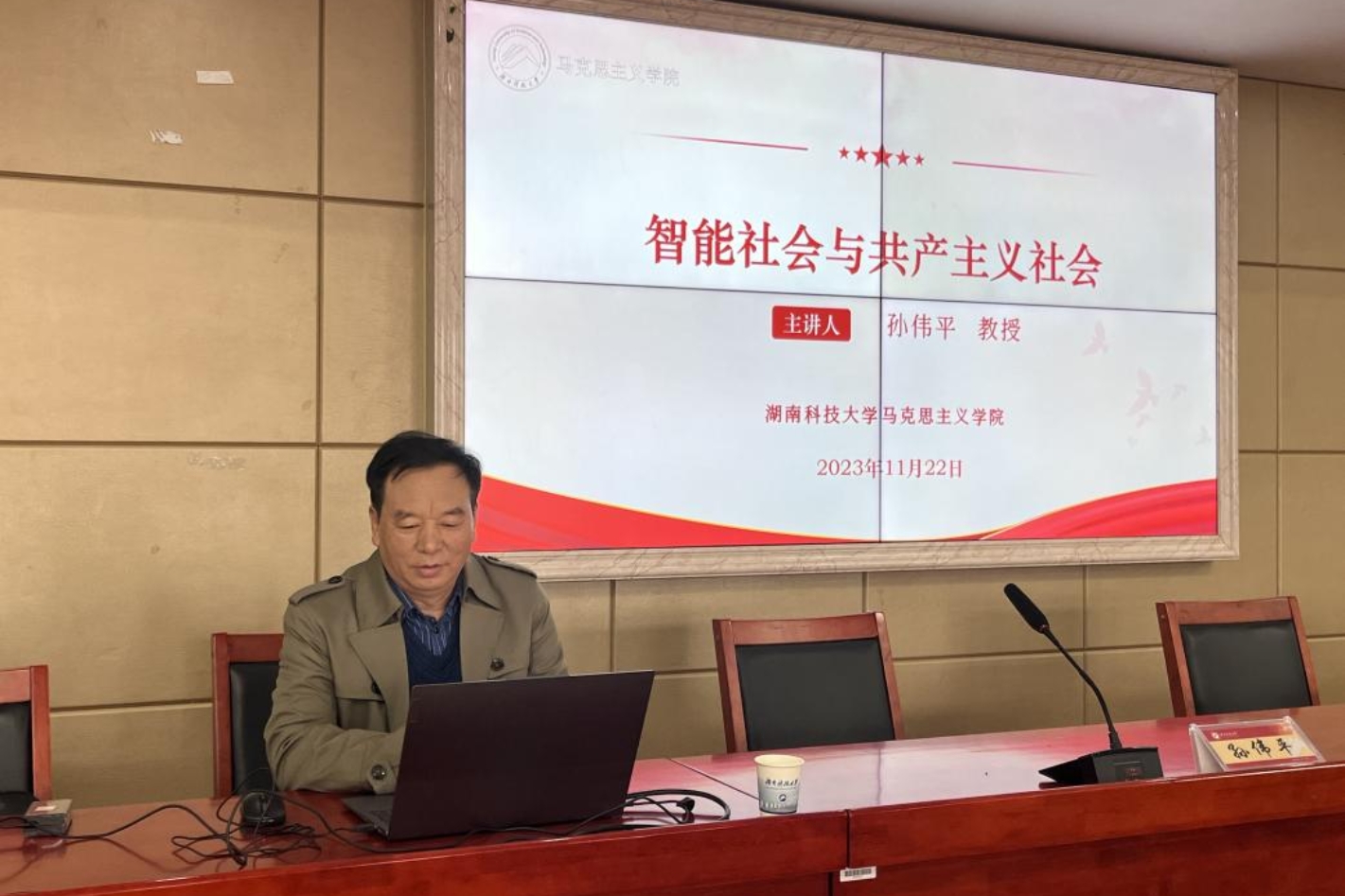 11月22日下午,“湘江高端学术论坛”系列学术讲座在立言楼A5-1室进行,中国辩证唯物主义研究会副会长、价值论研究专业委员会会长、教育部长江学者奖励计划特聘教授孙伟平应邀为我校师生作题为“智能社会与共产主义社会”的学术讲座。讲座由永利yl23411副院长宋劲松教授主持。