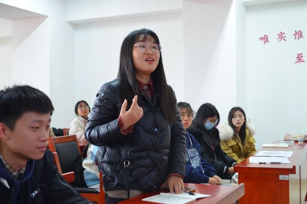 接着,来自17级思政三班的李斯向大家强调了学习的主动性、扩大知识面的重要性以及自主计划的必要性。她表示,要根据自身经验总结学习方法,及时总结课堂知识;利用课余时间参加竞赛;阅读老师所推荐的专业书籍;调整心态,树立目标,养成良好习惯。17级思政三班的林慧,分享了自己在学习、工作与生活上的经验。第一,培育思政学科兴趣,实现专业内在认同;第二,正确处理学习与部门工作之间的关系,分清轻重缓急,提前做好规划;第三,培养兴趣爱好,将学习知识应用于生活去认识未知事物。林慧学姐的经验面面俱到,她以自身经历告诉大家,学会处理好学习、工作和生活三者之间的关系,是迈向成功的重要一步。来自17级思政二班的戴宁将自己的经验总结为“放平心态,降低期待,减少依赖,偷偷拔尖,快乐自来。”其主要分为三部分,一是个人情况,二是态度方向,三是情绪、心态调整。