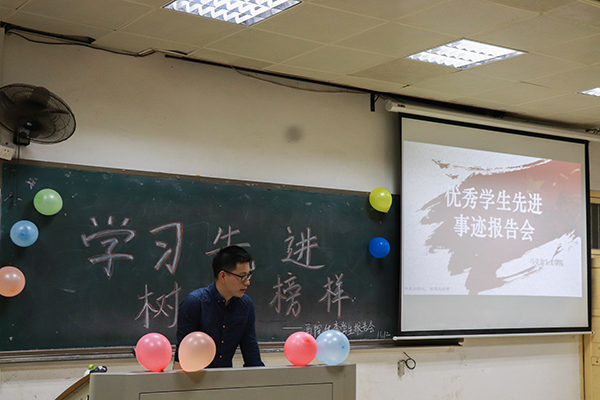 11月12日晚,于十教东附楼202教室召开了永利yl23411优秀学生先进事迹报告会,16级优秀学生代表王阳、高美月、李慧、李帅、林点作为主讲人分享自己在大学期间的经验和所思所感。学工办主任刘哲老师及学生会主席团出席了本次报告会。