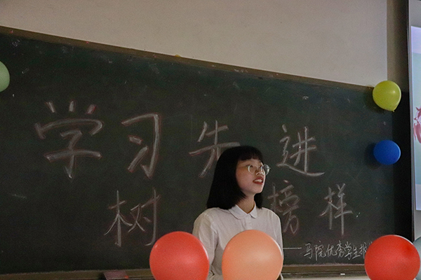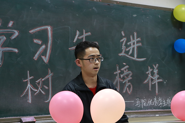 会议伊始,刘哲老师为本次报告会致词,他指出本次报告会的主题是:“学先进,赶先进”,其目的是为了进一步激发同学们的学习兴趣,促进马院学生的学风建设。刘哲老师还表示这次推选的五名主讲人作为优秀学生的代表,有着他们独特的学习方式和经验,他们分享的学习、工作、生活等方面的成功经验,将给同学们带来有益的借鉴和指导。