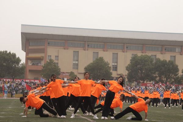 接下来是教职工的气功表演、舞狮表演以及健美操表演,花样百出、精彩绝伦,再一次把师生热情推向高潮。紧接着,由湖南科技大学校长朱川曲教授向科大学子致辞,话语间更是展现出对对大学生运动支持和对科大学子的殷切期望。